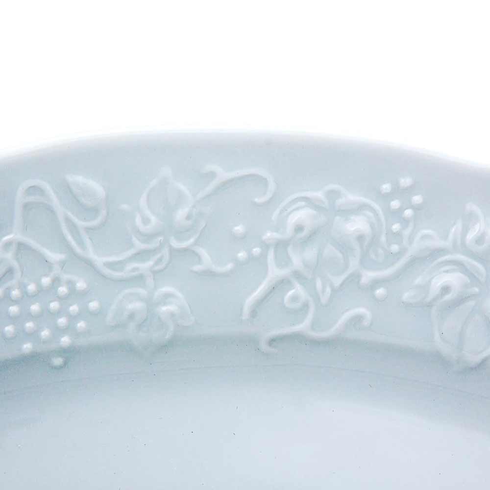 skulpturel elegance i lettelse er nøgleordene for disse kreationer i lyst hvidt porcelæn og en kunstnerisk relieffsdekoration. På den ene side et attraktivt design med flere figurer, på den anden side den charmerende landinspirerede dekoration.