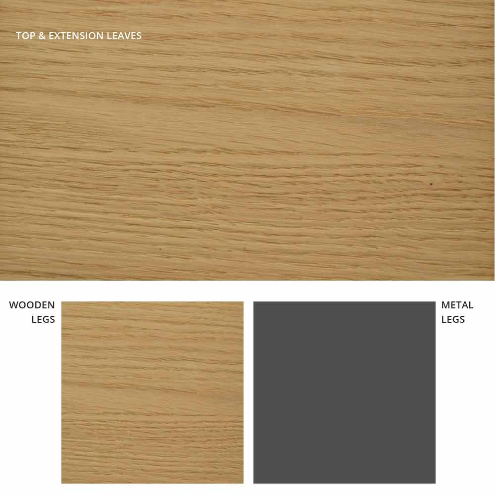 Daryls top og forlængere er fineret med naturlig eg; toppen har også en 45° udvidet kant.