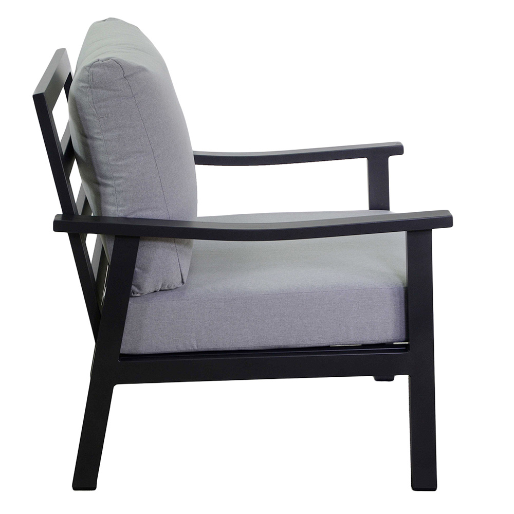Denne lounge er ideel til dem, der elsker at underholde eller bare slappe af i haven, og den kombinerer funktionalitet og æstetik og sikrer, at hvert ledigt øjeblik er en oplevelse af luksus og komfort.