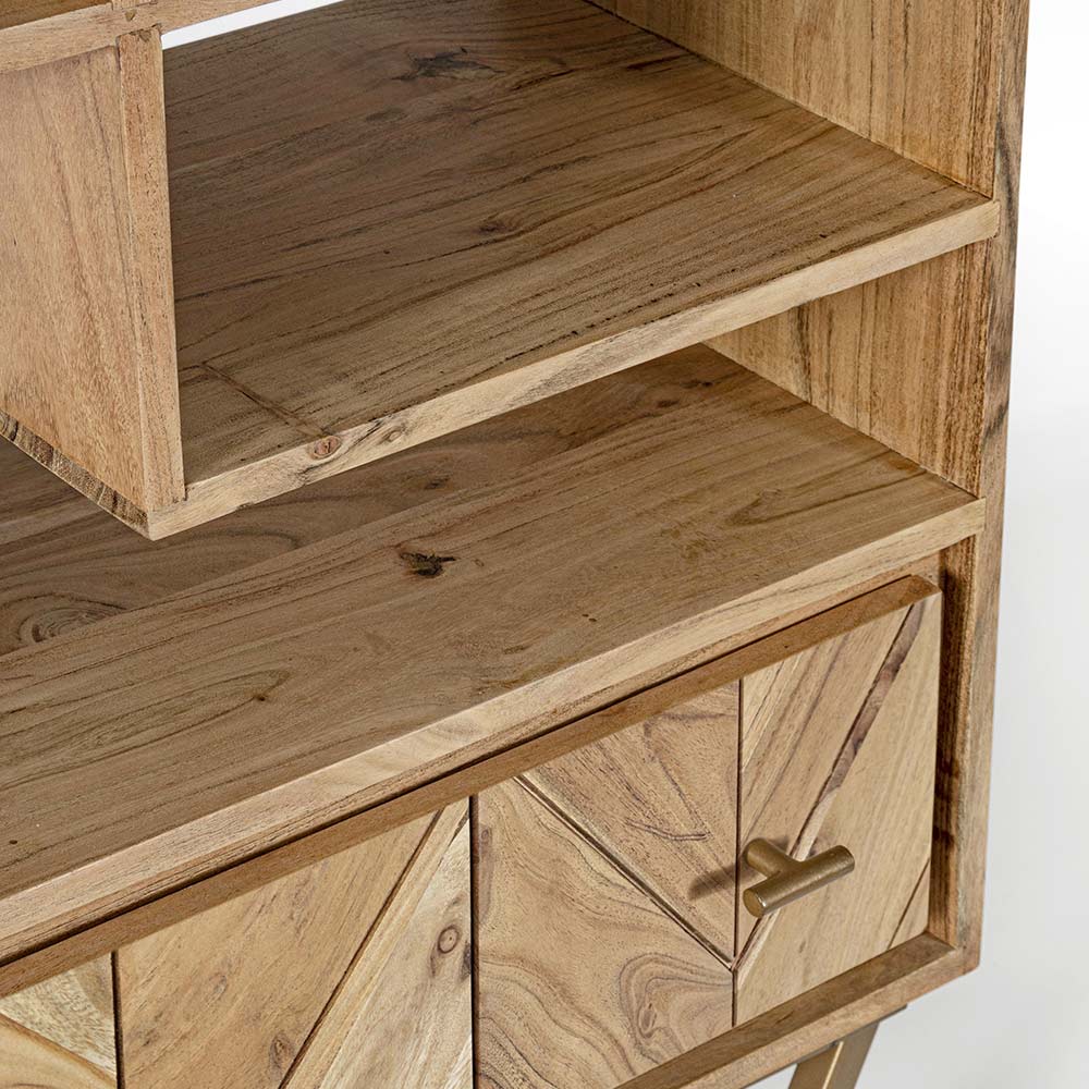 Denne stuereol har en akacietræstruktur med krydsfiner bagside og inderside af skufferne, finish baseret på polyurethan lak.