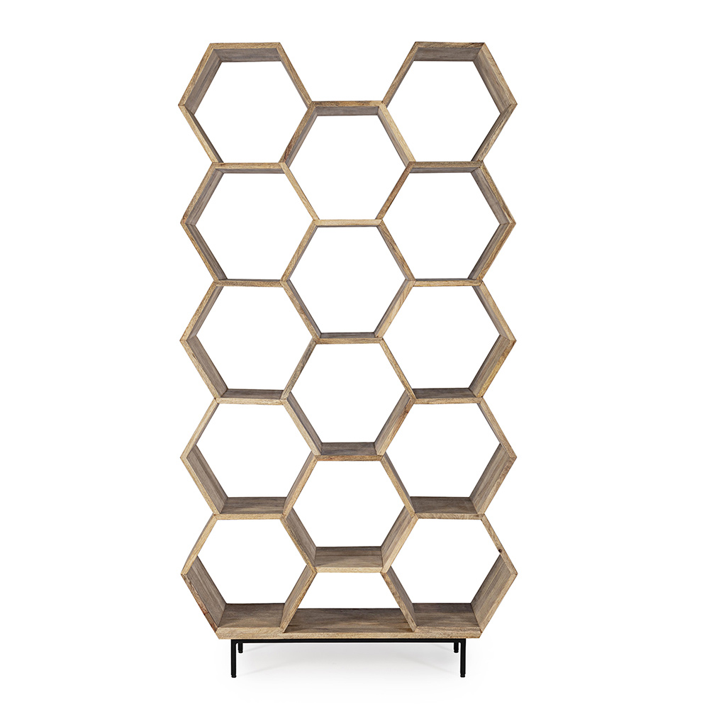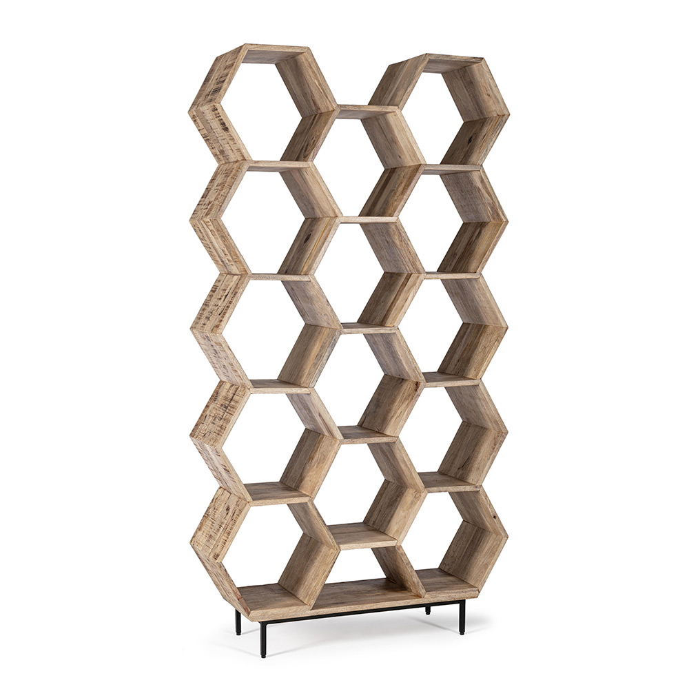 Stue bogreol i Mango Wood Honeycomb Design - Carida