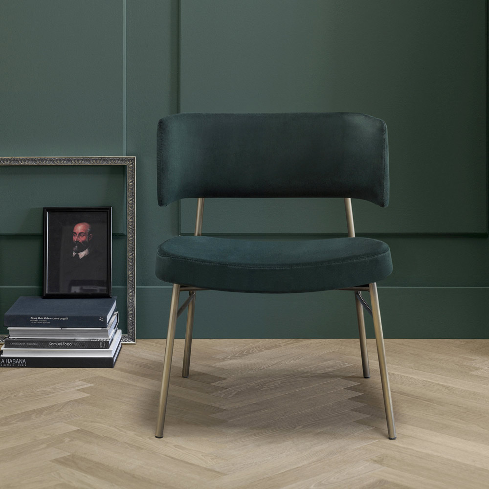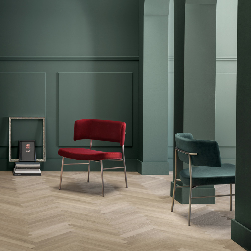 enkle linjer, der omfavner hele strukturen og den tidløse forfining af fløjl, et materiale af stor værdi og med et fascinerende udseende. Takket være dens form sikrer denne vidunderlige lænestol et ergonomisk og indbydende sæde, studeret og designet til at give øjeblikke dedikeret til afslapning, hvor du kan lade dig forkæle.