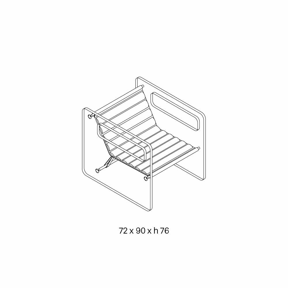 Strukturen er faktisk sammensat af to ark hærdet glas med to åbninger, der bliver behagelige og praktiske armlæn.