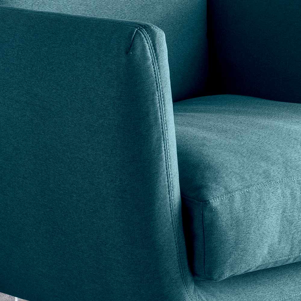 antracitfarvet malet metal. Lænestolen repræsenterer en harmonisk fusion af komfort og moderne stil. Det elegante design med bløde og afrundede linjer fremkalder en følelse af hygge, mens den robuste struktur sikrer holdbarhed over tid. Det højkvalitets stofbetræk lover sammen med de store og komfortable hynder en afslappende siddeoplevelse. De tynde og geometriske fødder tilføjer et sofistikeret touch, hvilket gør lænestolen til et fascinerende stykke design. Denne lænestol er ideel til dem, der leder efter en indretningsløsning, der kombinerer moderne æstetik og upåklagelig komfort.
