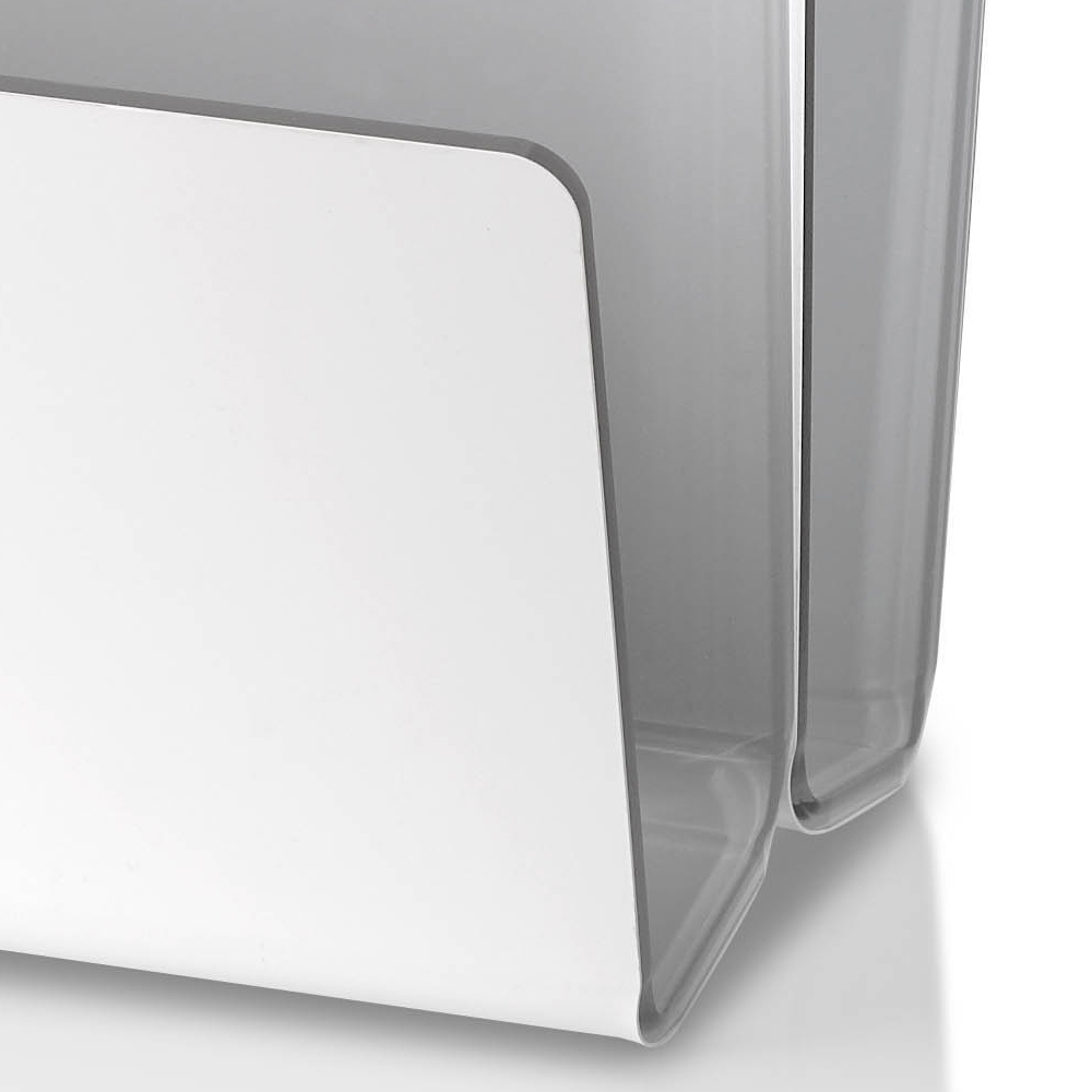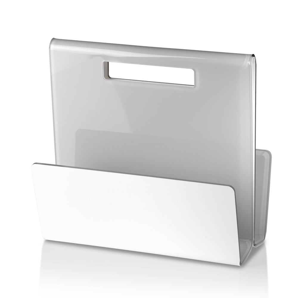 Stue magasinholder i hvid eller hvid og duegrå akryl krystal fremstillet i Italien.