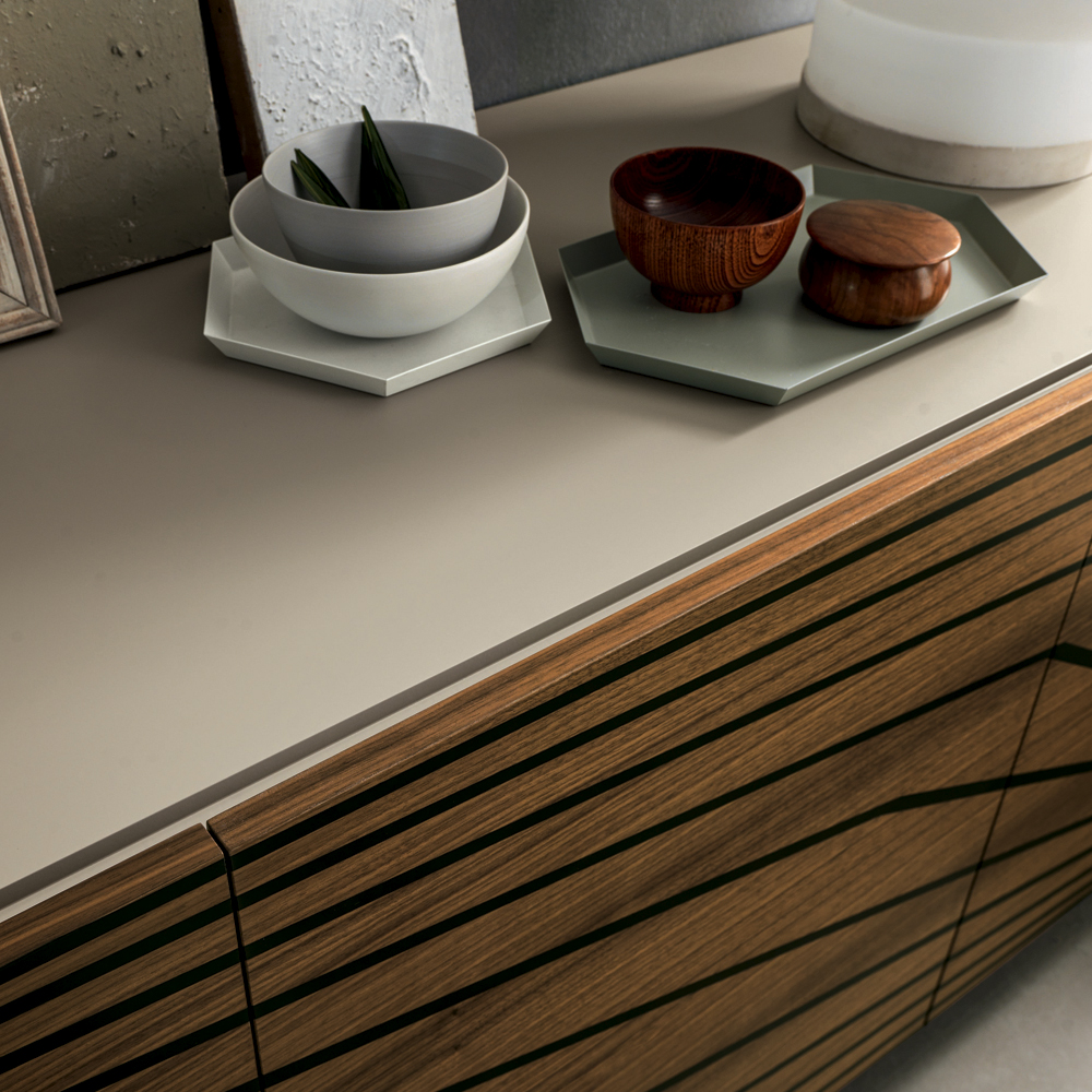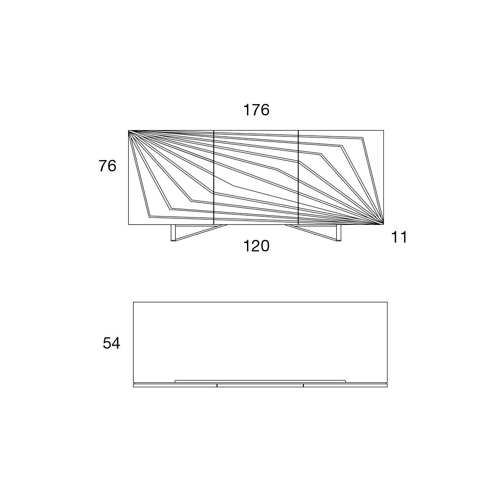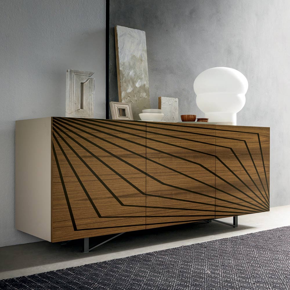 3-dørs lakeret MDF skænk med silketrykte indlæg, design fremstillet i Italien.