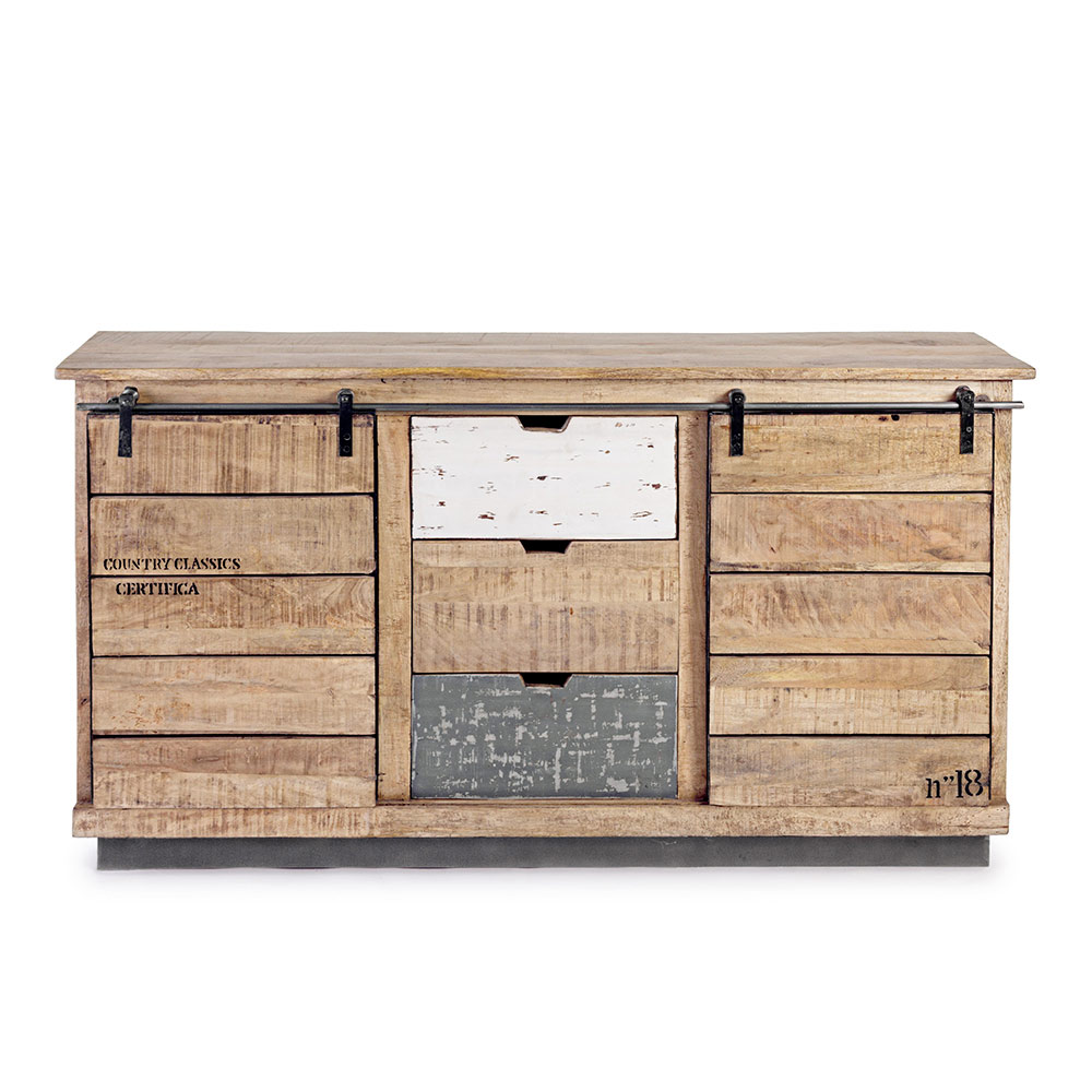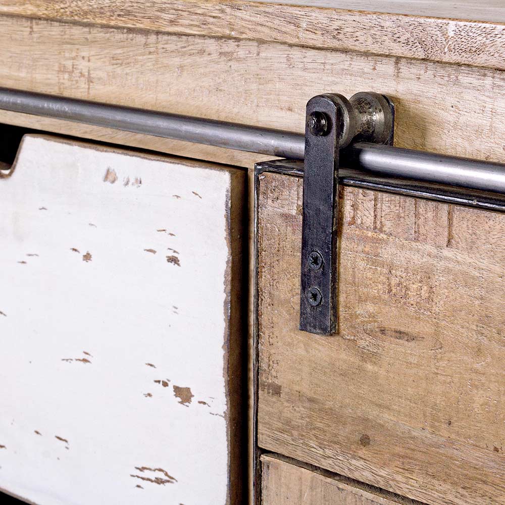 Skænk i mangotræ, stål med 2 låger og 3 skuffer.