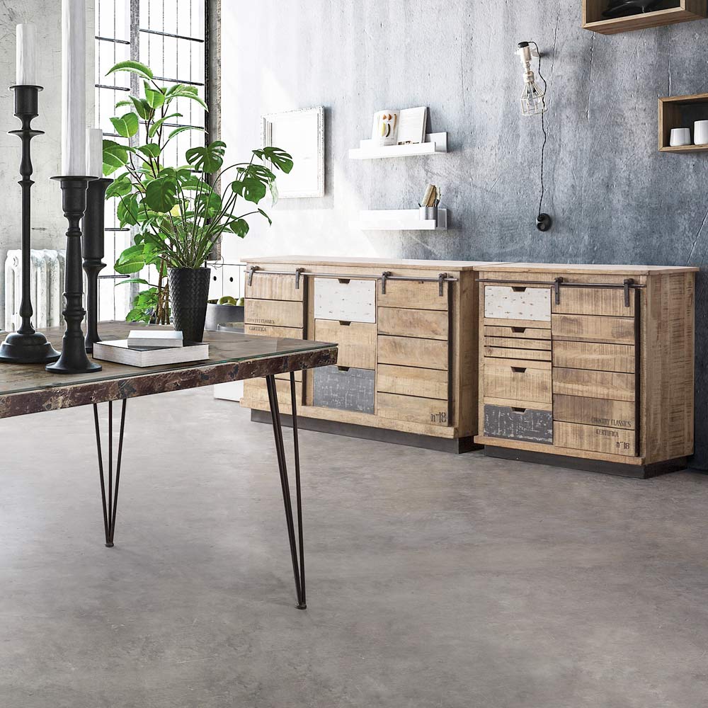 Stue skænk i mangotræ og stål med 2 låger og 3 skuffer - Sinfony