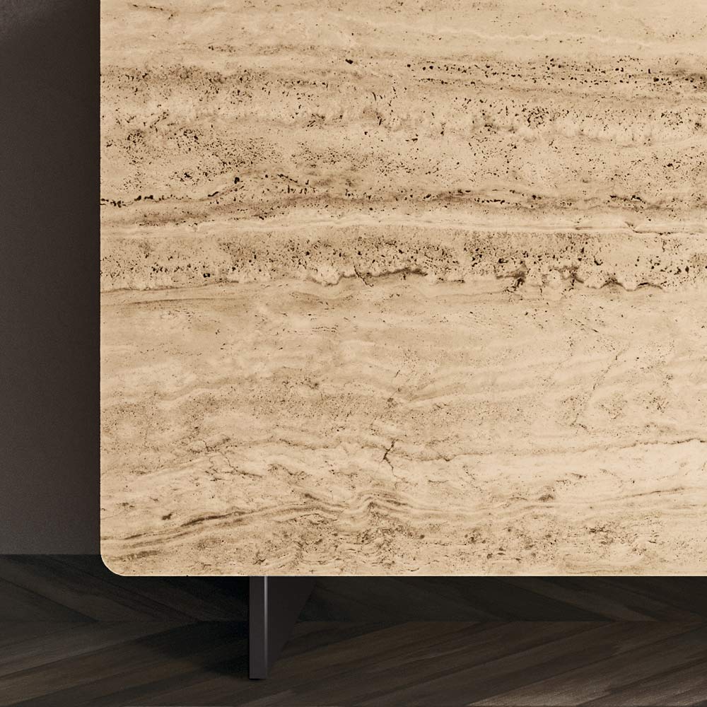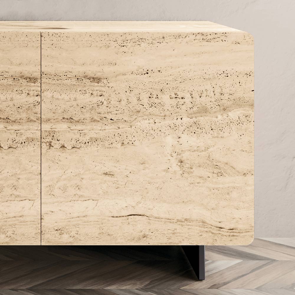 travertin marmor finish, helt Made in Italy. Produktet er en del af den nye linje af moderne produkter lavet med respekt for naturen. Denne elegante skænk er kendetegnet ved funktionaliteten og den høje kvalitet af italiensk håndværk.
