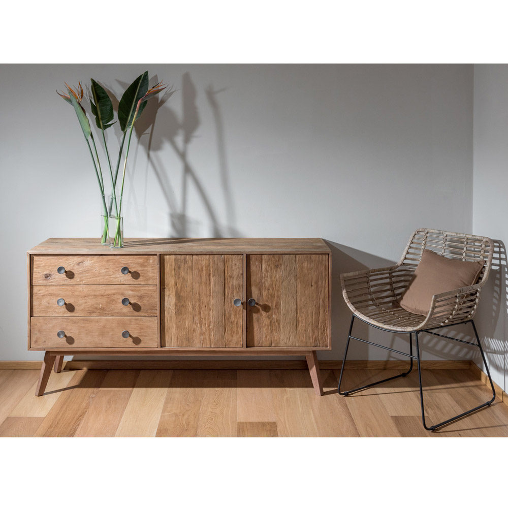 Indendørs skænk lavet af genbrugstræ med naturlig vintage finish med 2 låger og 3 store skuffer.
