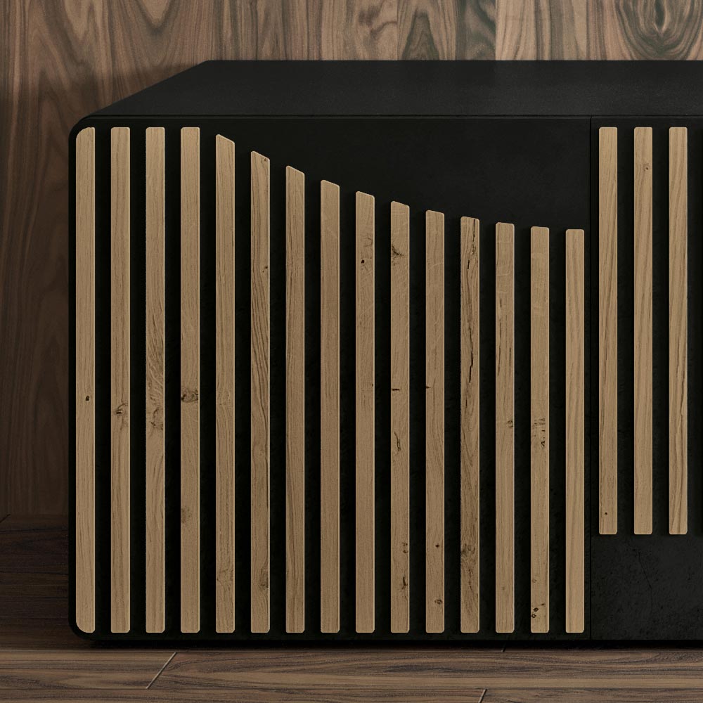 Stue skænk med 3 låger med lodrette lameller udført med
