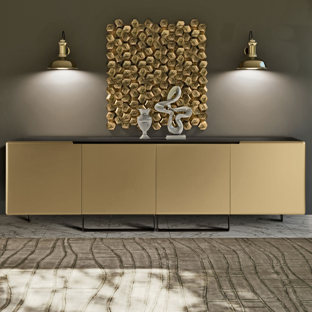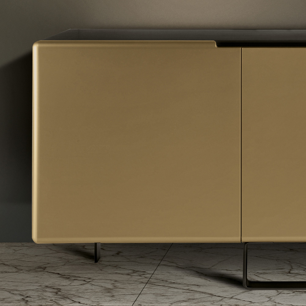 Tilgængelige finish:- guld lyse døre, trækul krop og base