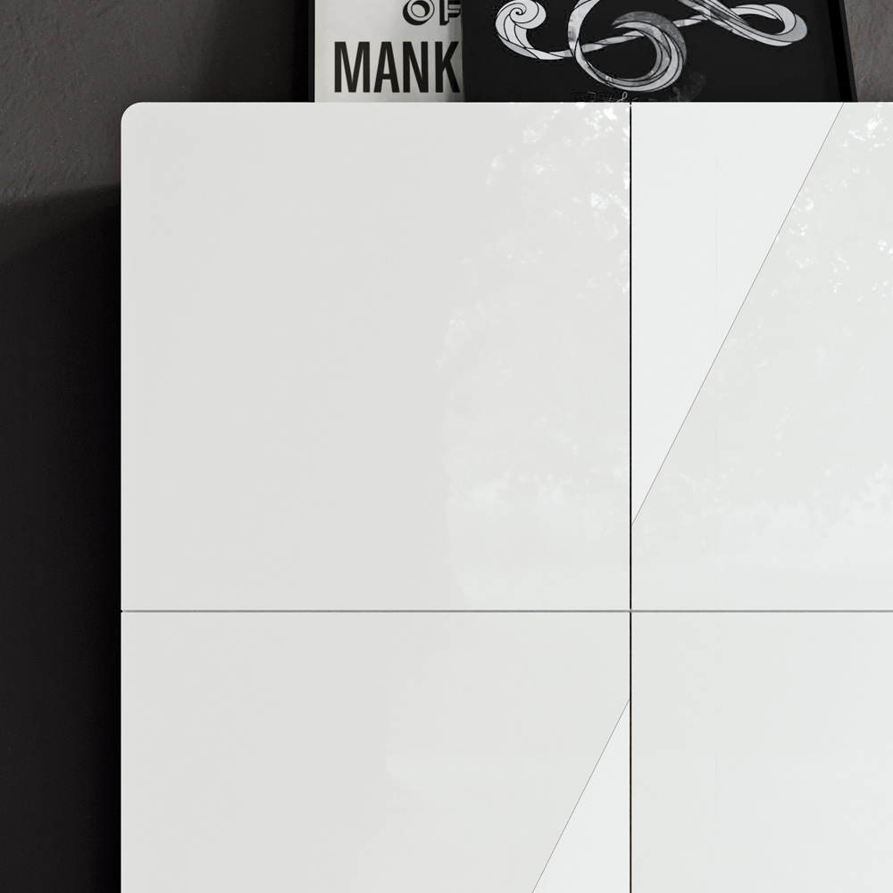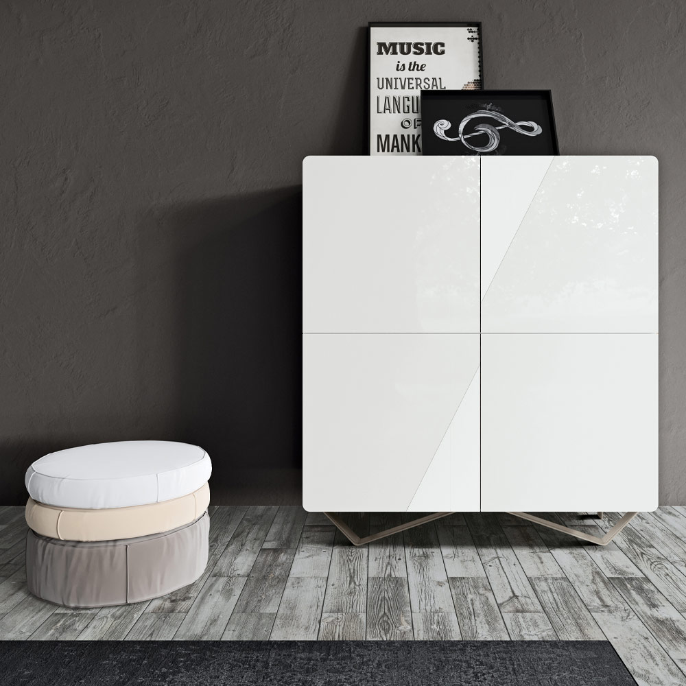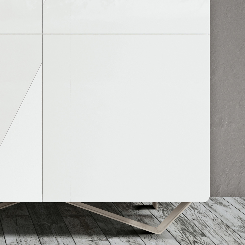 hvide glas finish låger med hvide indsatser , helt Made in Italy. Produktet er en del af den nye linje af moderne produkter lavet med respekt for naturen. Denne elegante skænk er kendetegnet ved funktionaliteten og den høje kvalitet af italiensk håndværk.