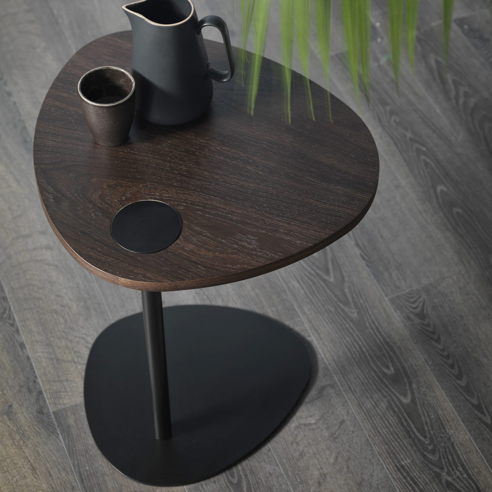 Cantilevered sofabord til stue i metal med røget egeplade, høj kvalitet fremstillet i Italien.