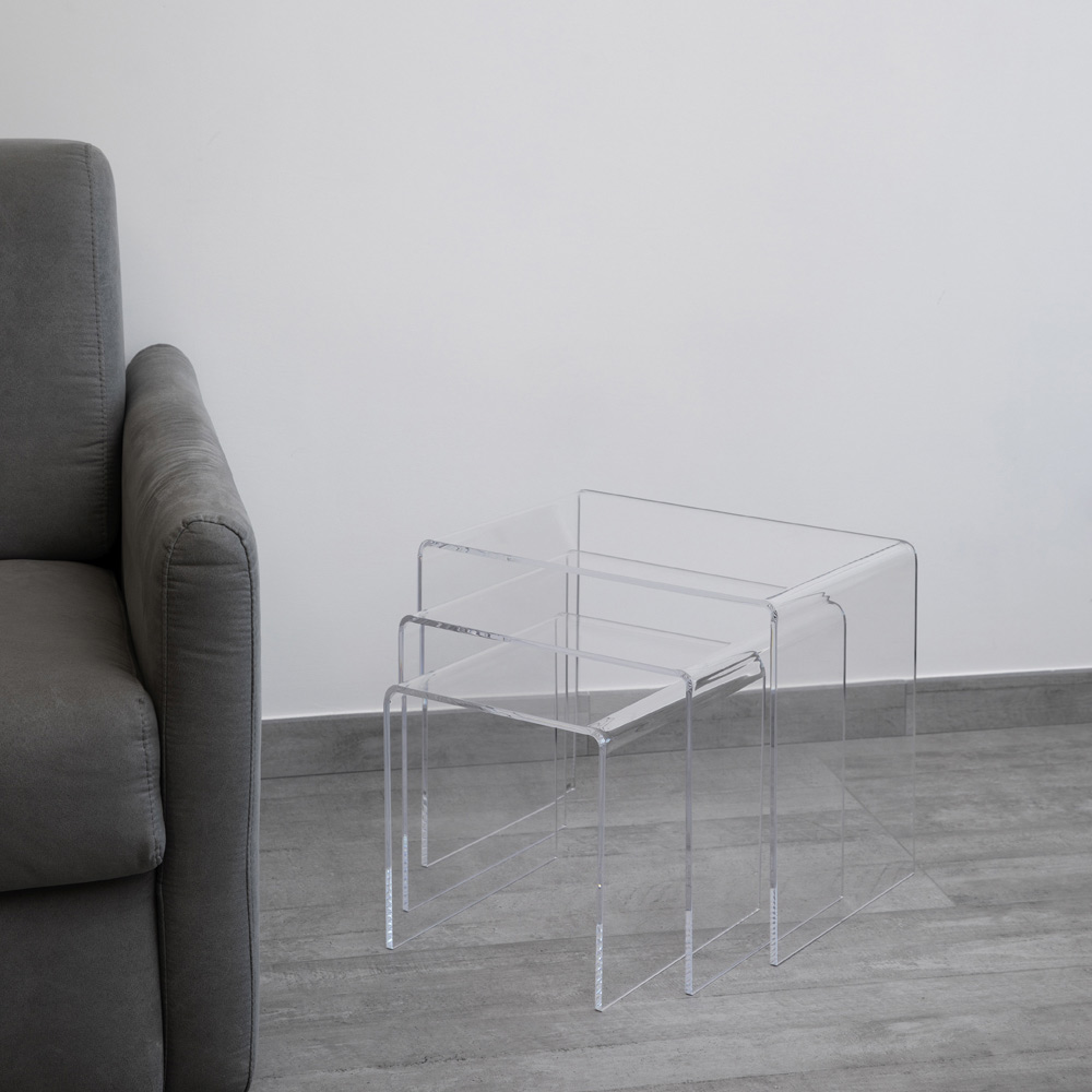 Triptykon sofaborde i transparent akryl krystal, lavet i Italien.