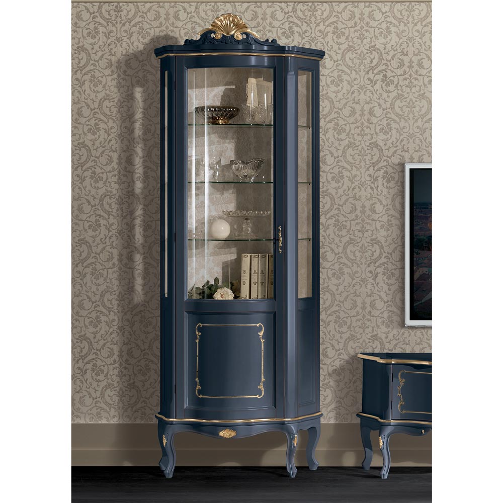 Stue vitrineskab lavet af luftvåben blå eller hvid og guld finish træ med dør, perfekt til at dekorere ethvert opholdsområde med