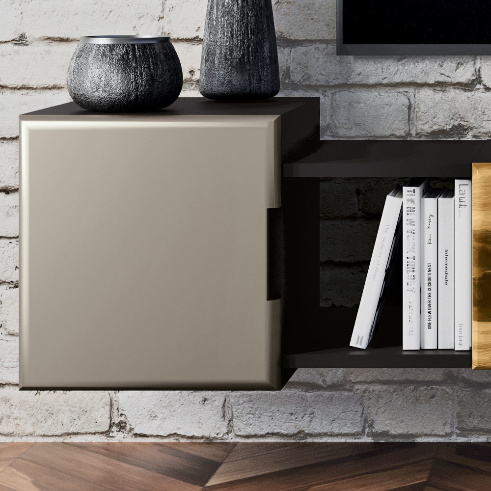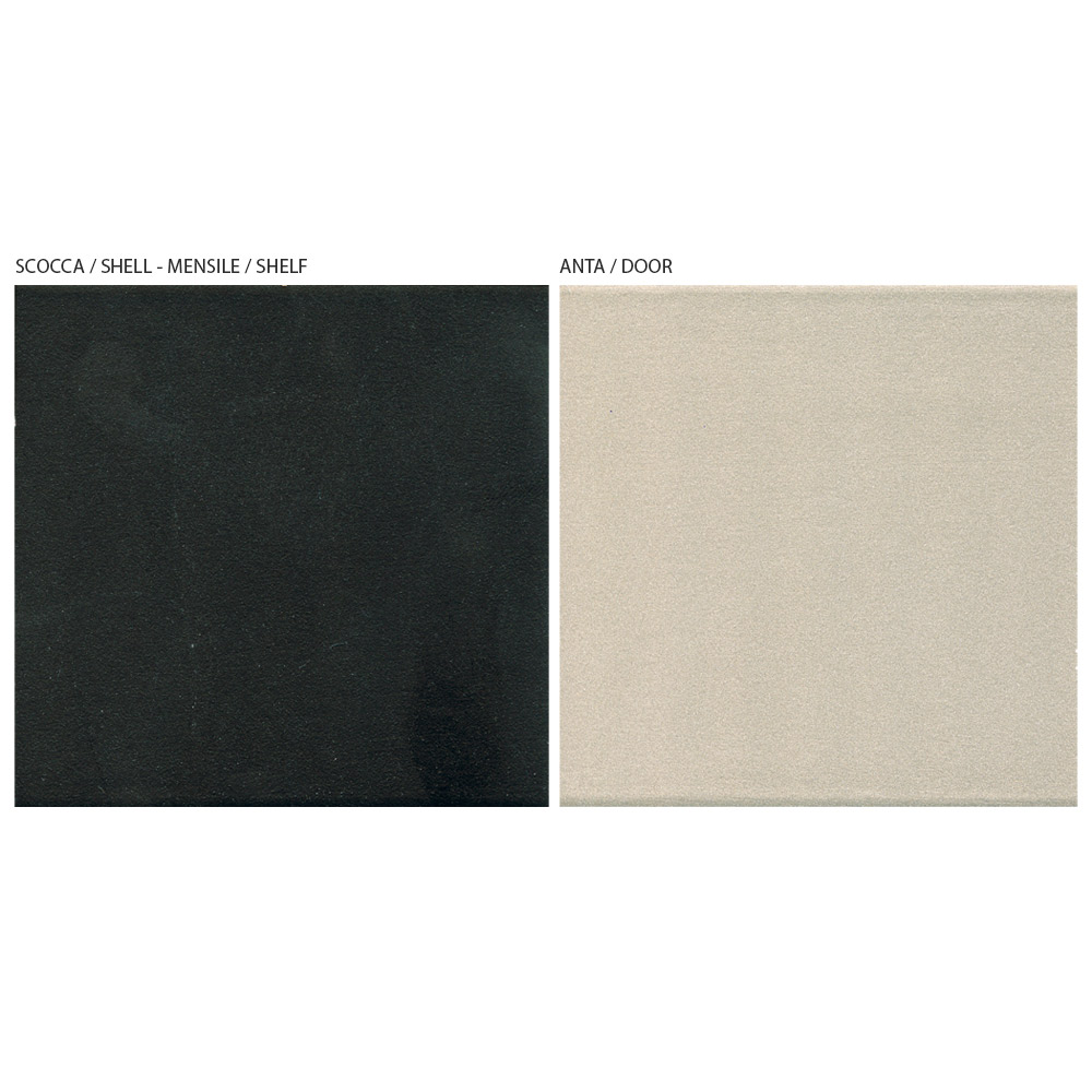 - vægelement med venstreåbnende låge med sæbeprofiler, NIKKEL + CARBON finish, krop og fronter i MDF
