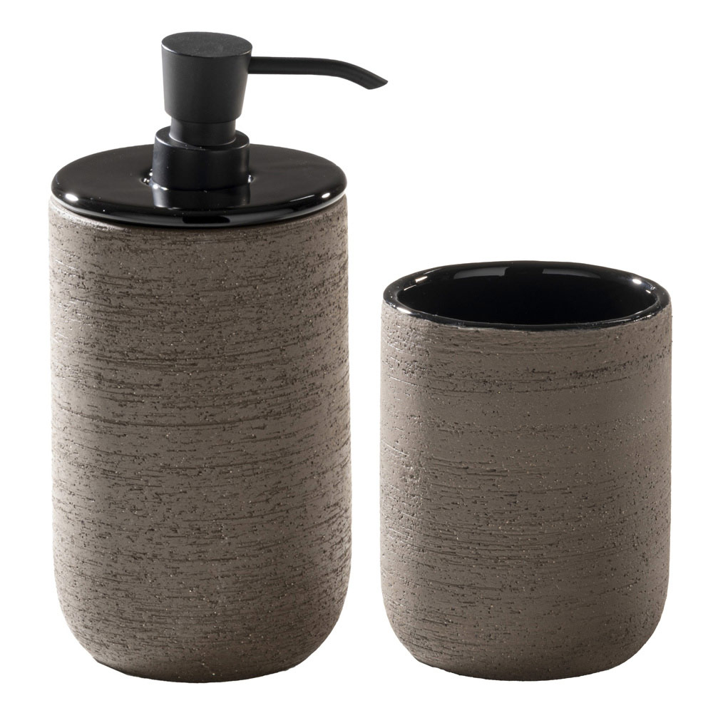 ildfast ler og mørk jord med blank sort emaljeret interiør.