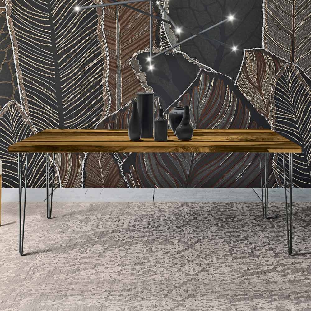 Fast rektangulært designbord med træ- og harpiksplade Made in Italy