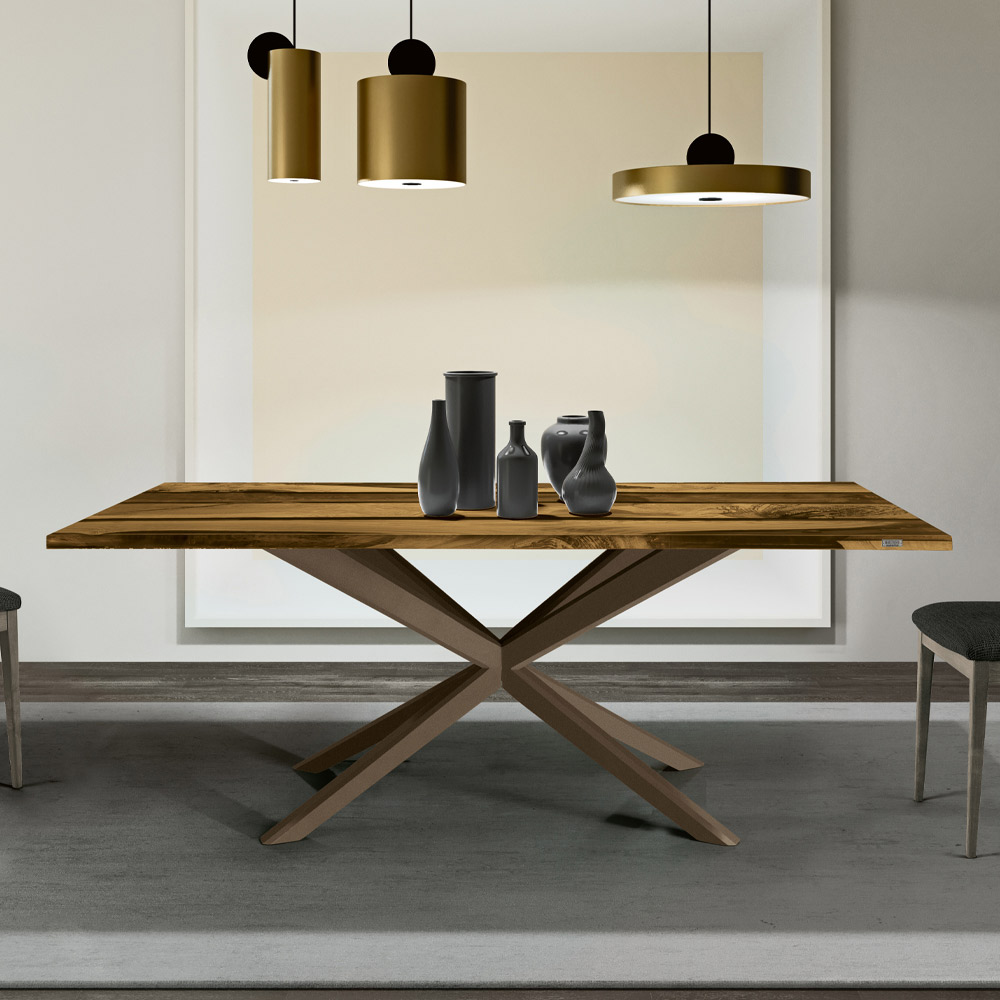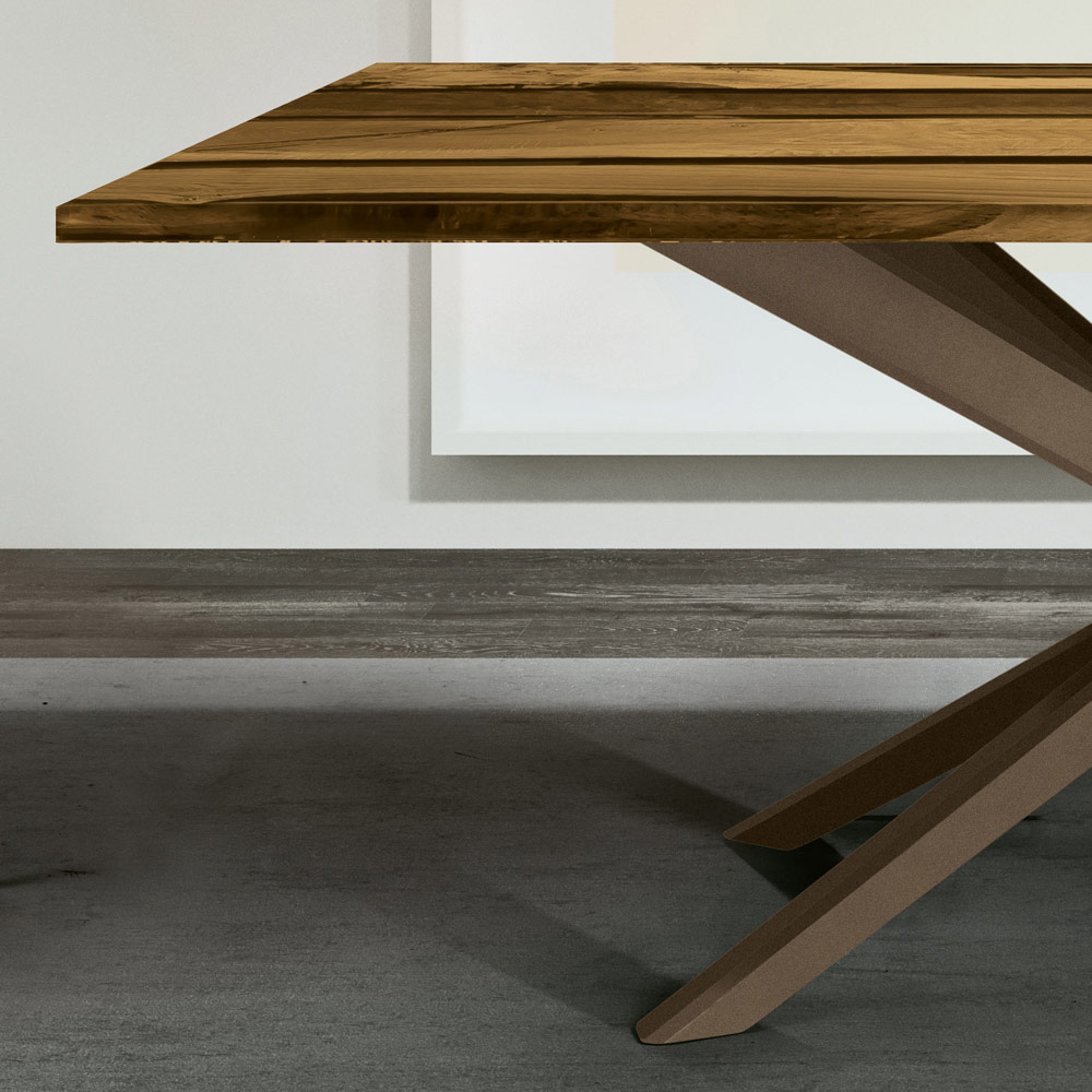 jernfarvet træbund . Resultatet er derfor et moderne og banebrydende spisebord, kendetegnet ved en markant