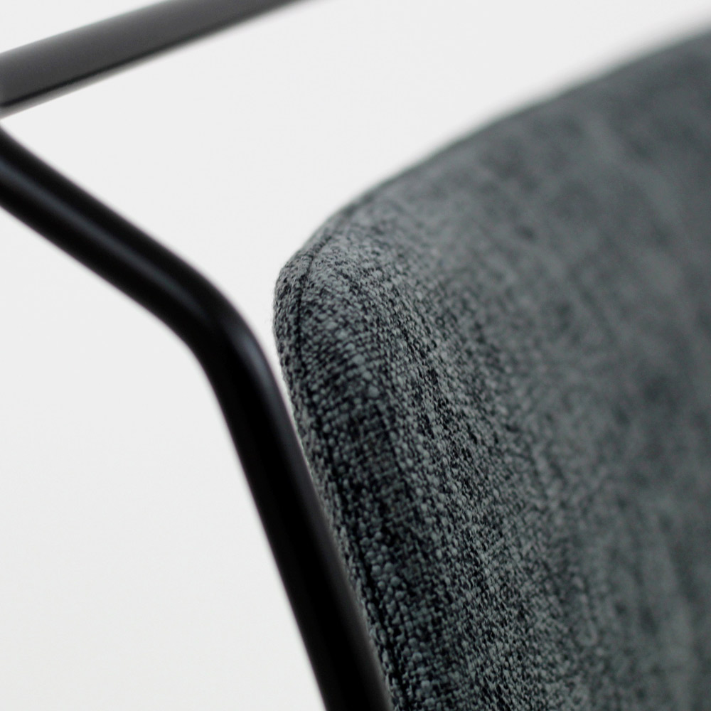 sæde i røgfarvet grumello stof . Dette produkt egner sig til at fuldende indretningen af enhver stue, spisestue og køkken takket være dets