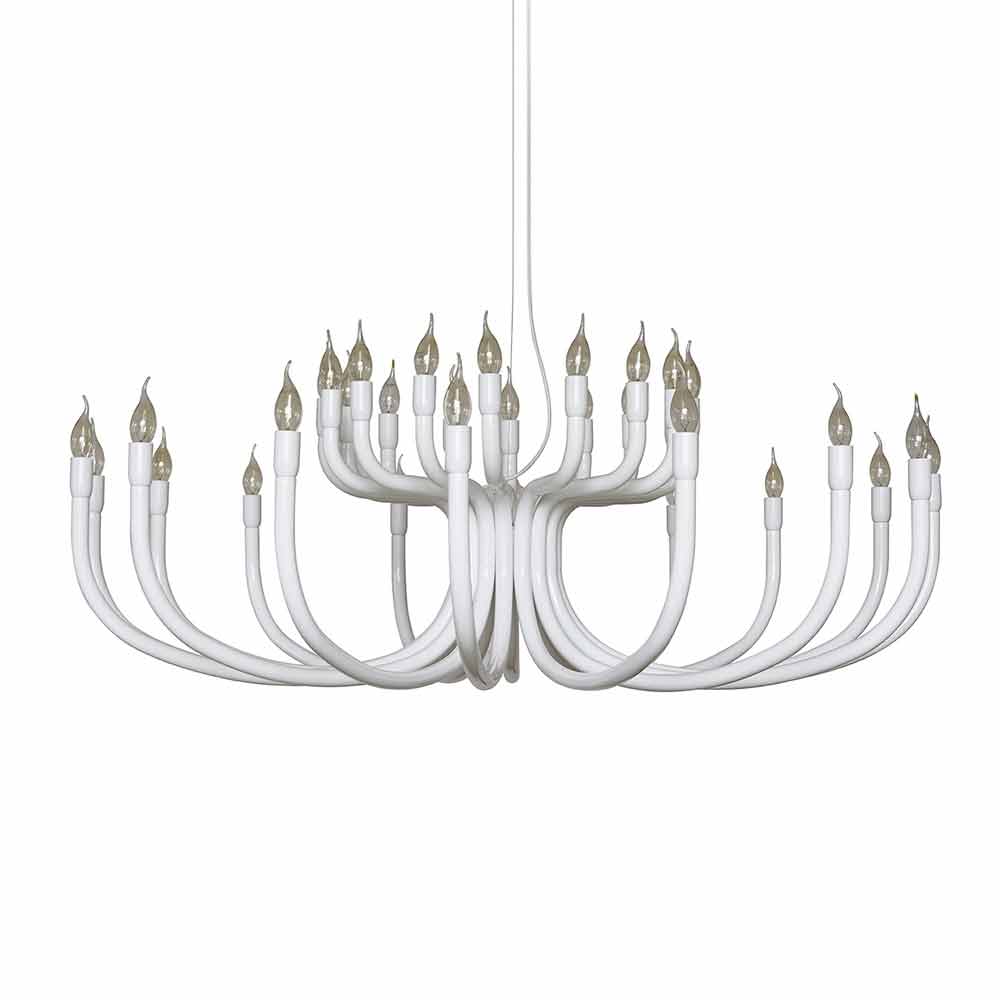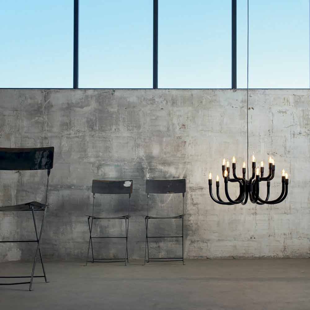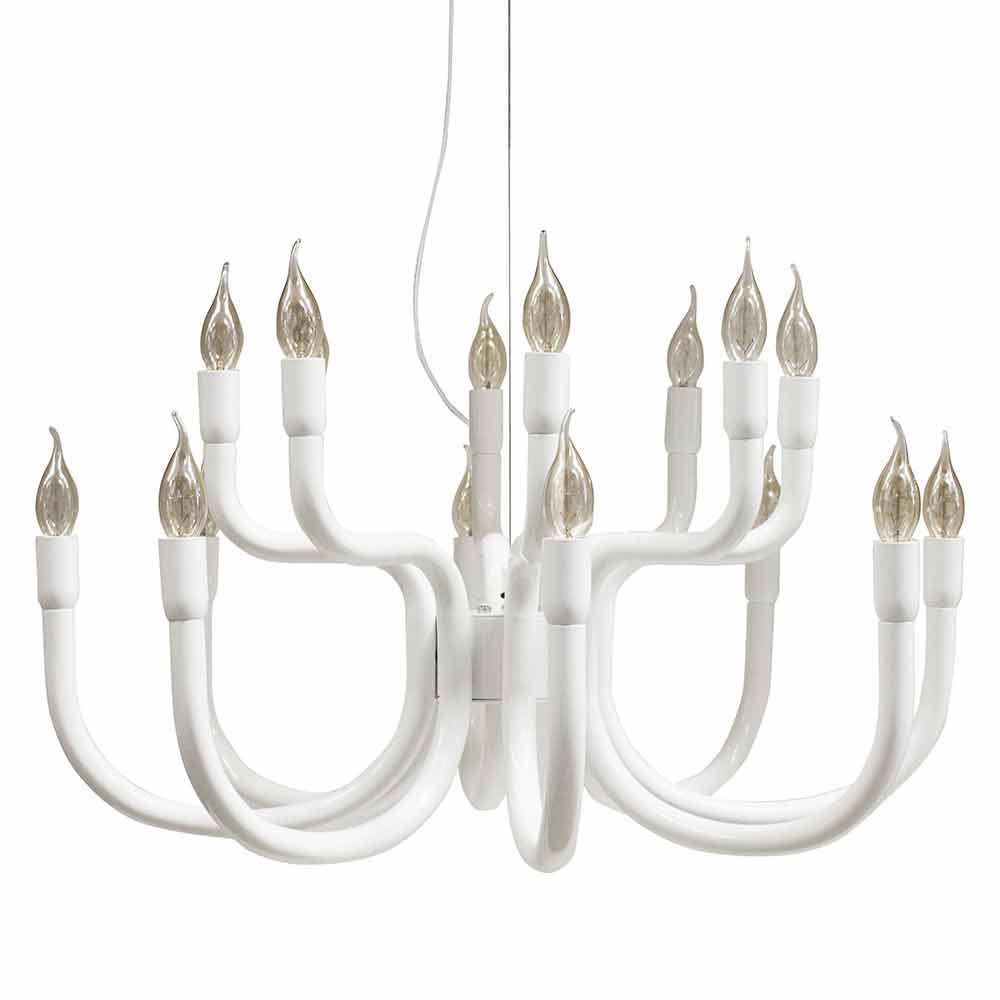 Denne originale og enestående suspension lysekrone til spisestuen eller stuen henter inspiration i form fra de gamle lysekroner i paladserne i fuld barokstil rig på dekorationer, men er alligevel revideret i en moderne nøgle med et ekstremt simpelt design, der kan indsættes i rum af forskellige typer, der altid holder scenens tilstedeværelse levende.