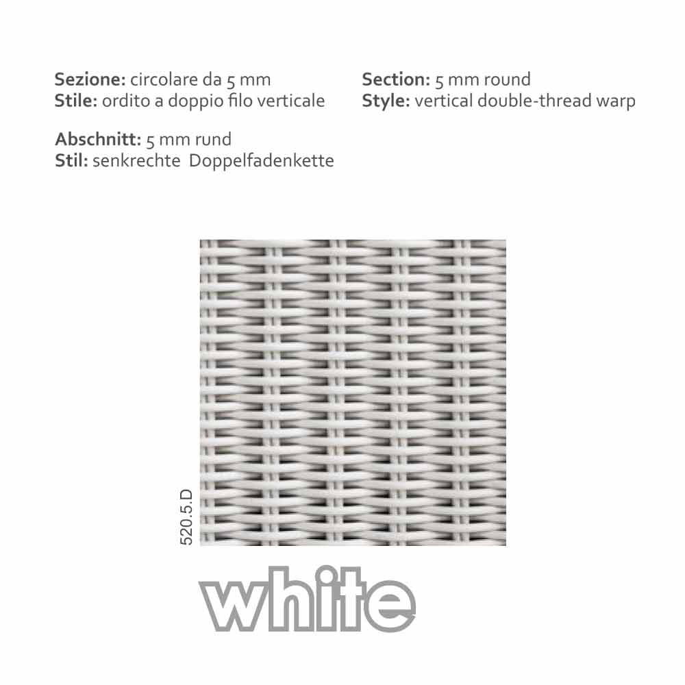Matt udgøres af en aluminiumsramme, med polyethylen struktur at være 5 mm rund, helt flettet i hånden, som findes i to forskellige finish: hvid eller honning.