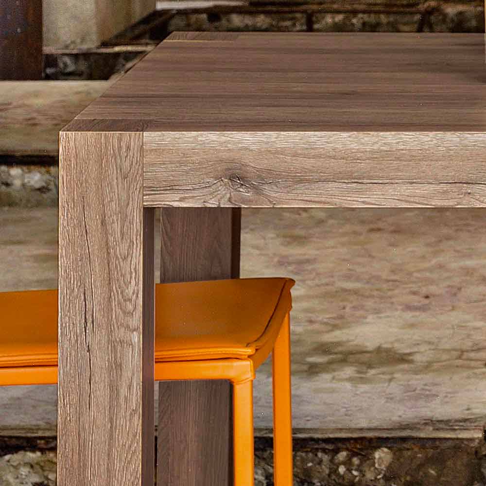 Oky spisebordet er lavet af melamin med en naturlig egetræsfinish. Den har 4 praktiske udtræk på hver 40 cm som giver dig mulighed for at forlænge bordet til en overflade på 300 cm, via et praktisk og hurtigt udtrækssystem på glideskinner.