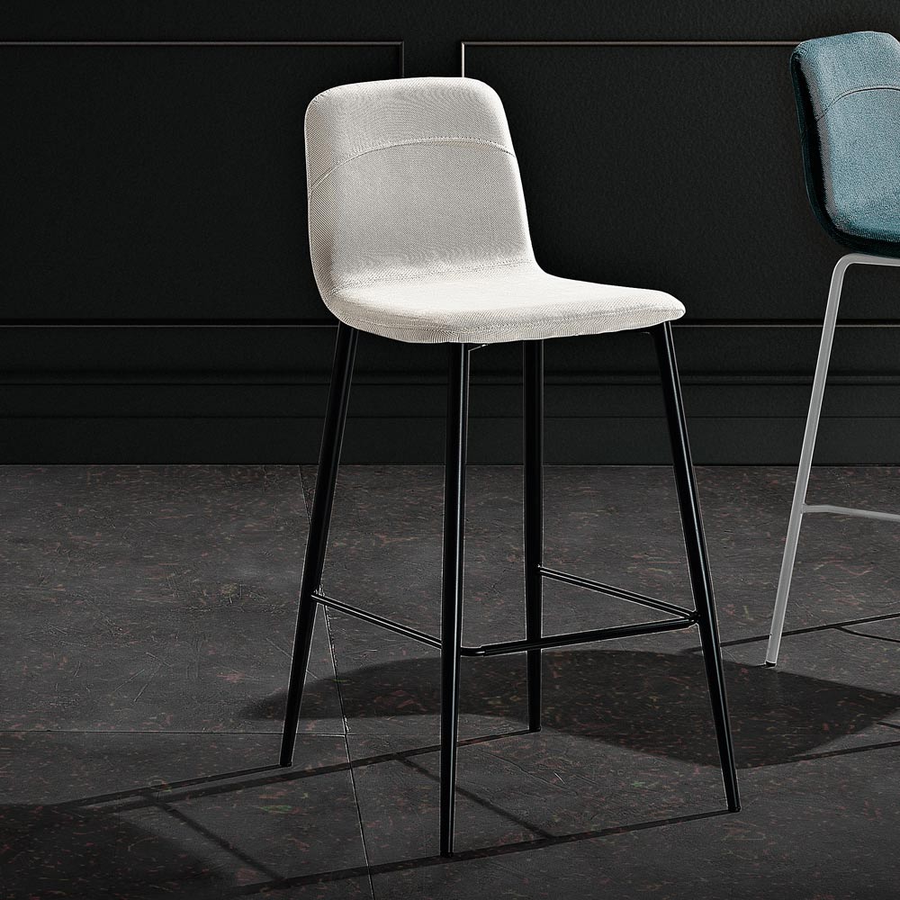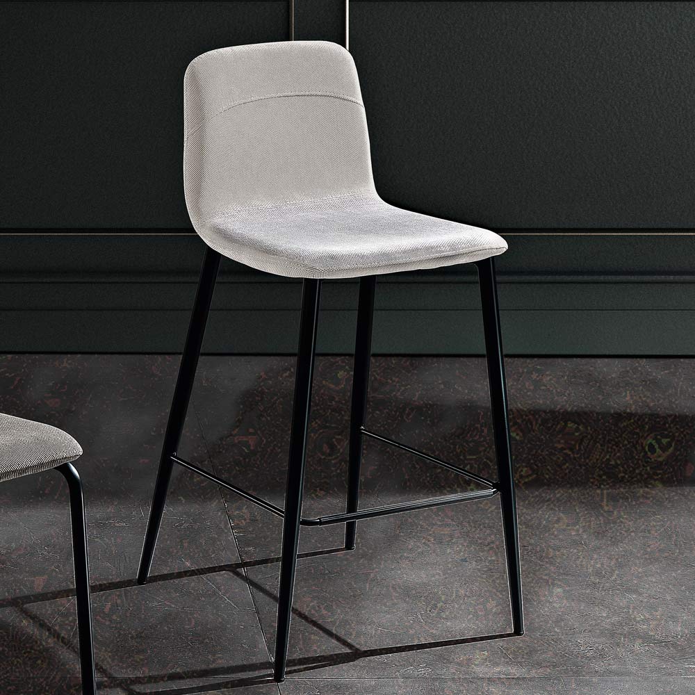 Køkkentaburet med sæde betrukket med stof og metalstel med rundt rør (diameter 16 mm) i mat antracit finish RAL 7021 komplet med praktisk fodstøtte, lavet i Italien.