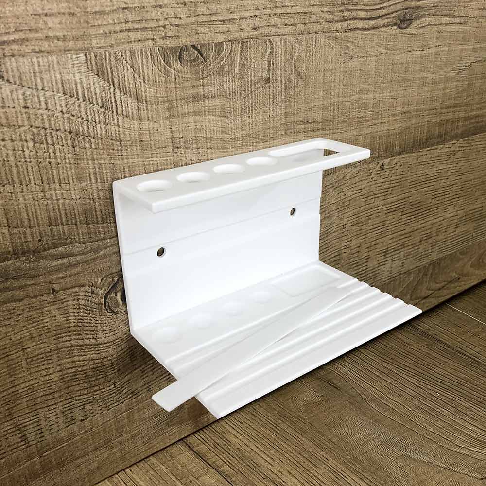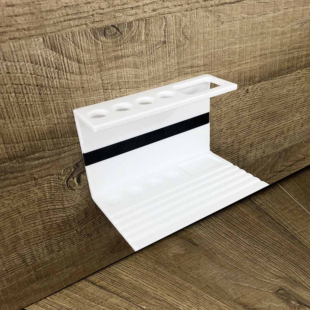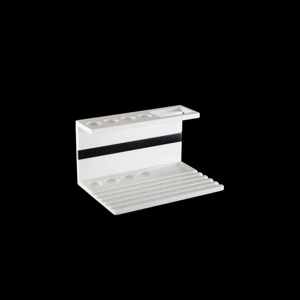 Tandbørsteholder til badeværelset i hvid eller hvid corian med sort indsats af høj kvalitet fremstillet i Italien.