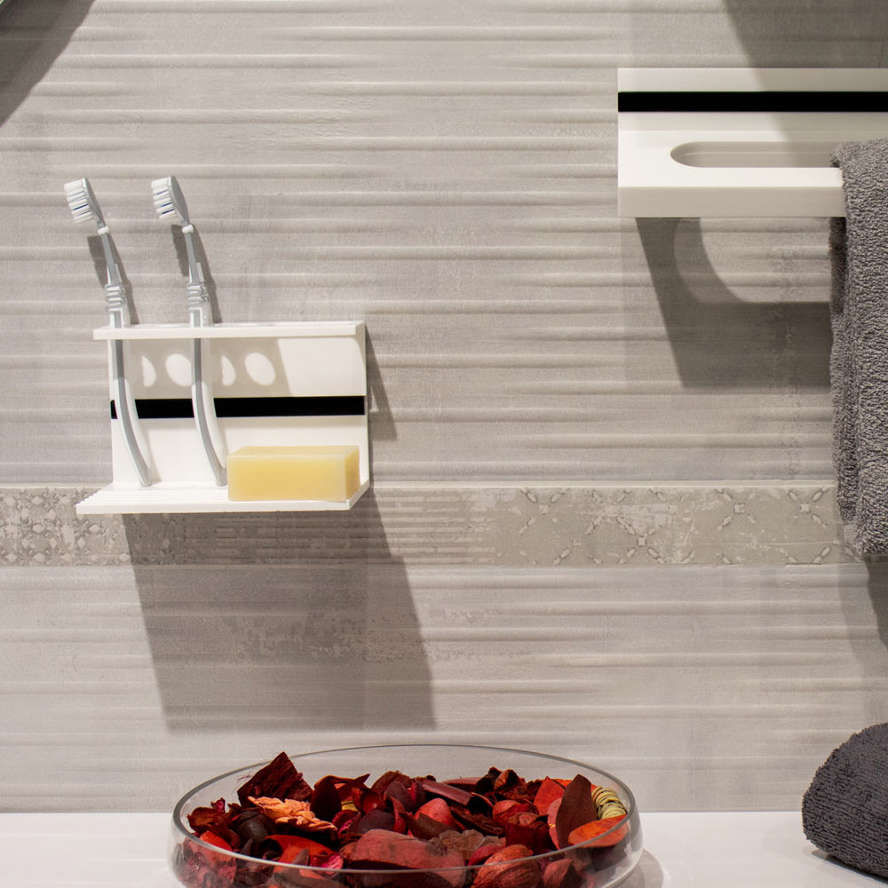 Vælg denne tandbørsteholder , tandpasta og sæbe 6 mm tyk som badeværelsetilbehør til en moderne og luksuriøs atmosfære udelukkende lavet af Corian, et hygiejnisk materiale med essentielle linjer.