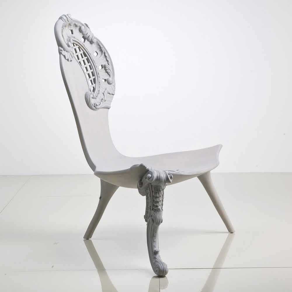 Throne håndskårne massivt egetræ grå design, Leon