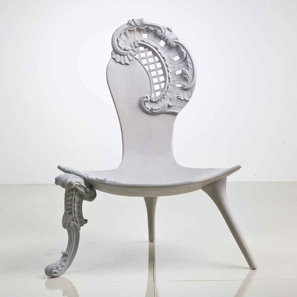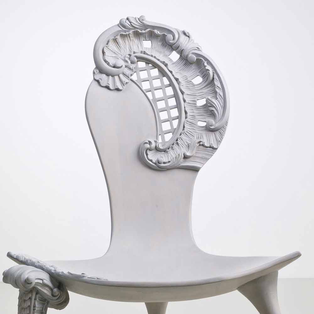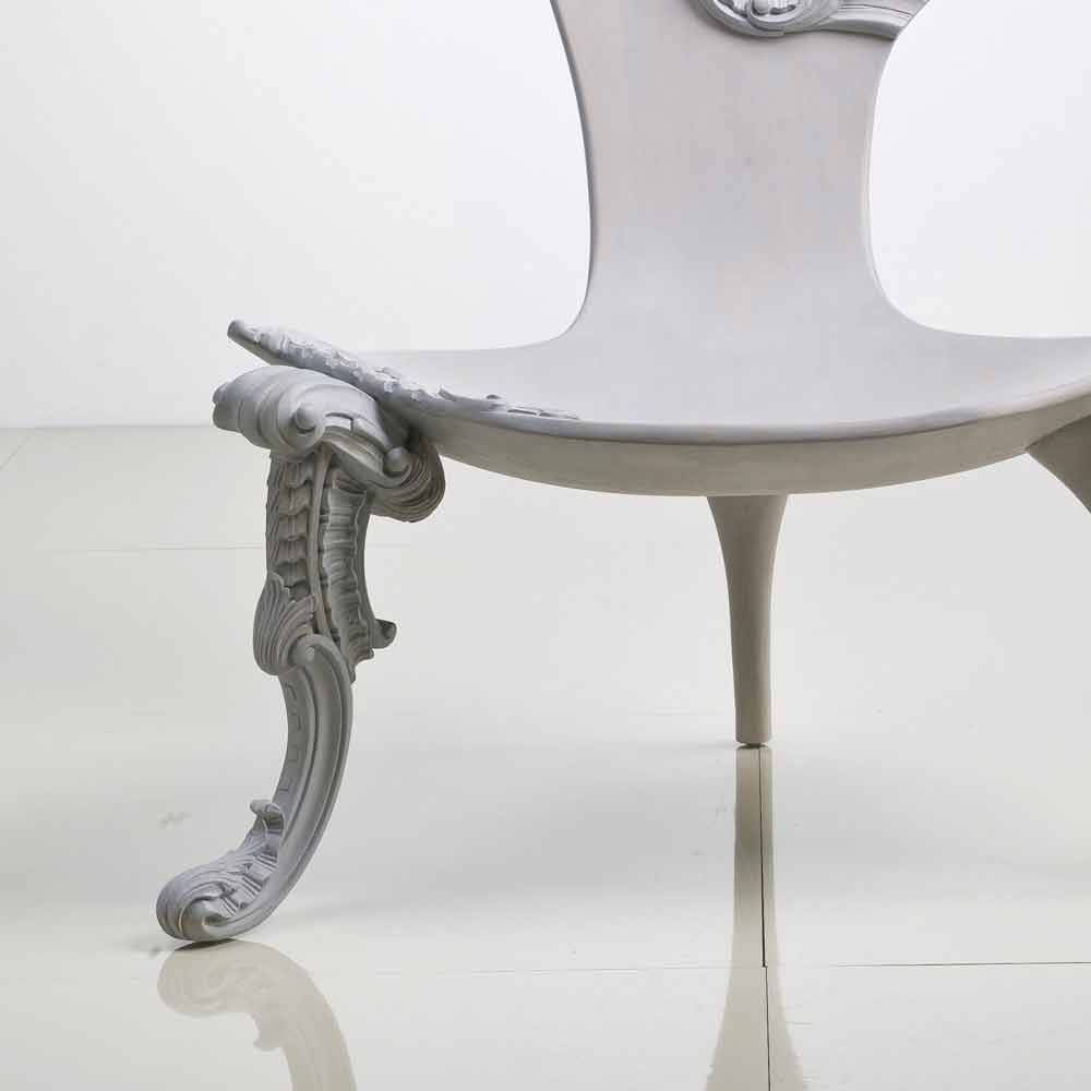 Leon er et træ håndskårne trone med fast ryg med barok udsmykning og sæde i massivt træ. En glat ark træ skitserer den bløde profil i nogle af dens dele udvikler sig til en frodig barok arbejde. Næsten som om træet langsomt kommer til live, stolen vokser en slags blomstret hat komplet med et slør, mens benet er beriget med snoede træ krøller. Grå eg finish (koksgrå).