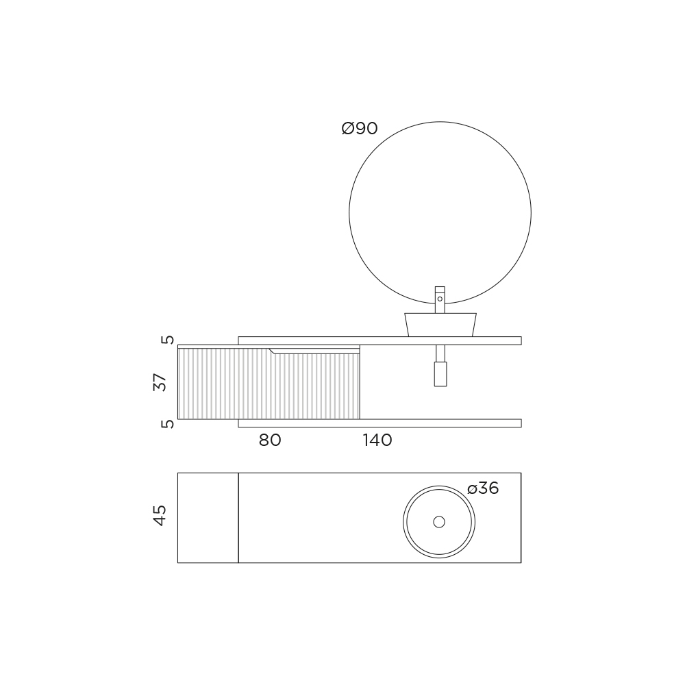 - Håndvask: Længde 36 x Dybde 36 x Højde 12 cm