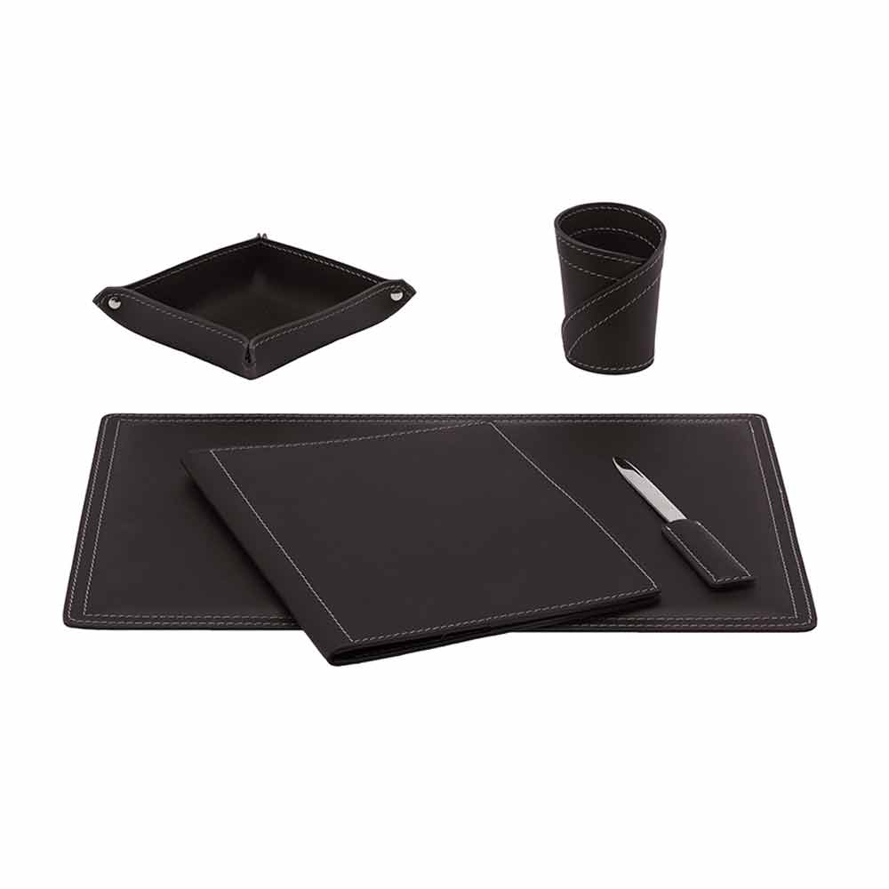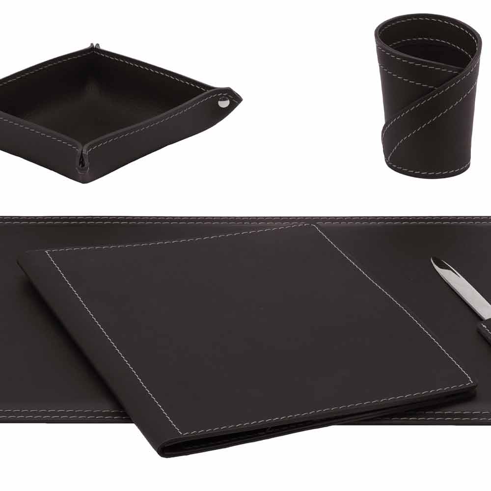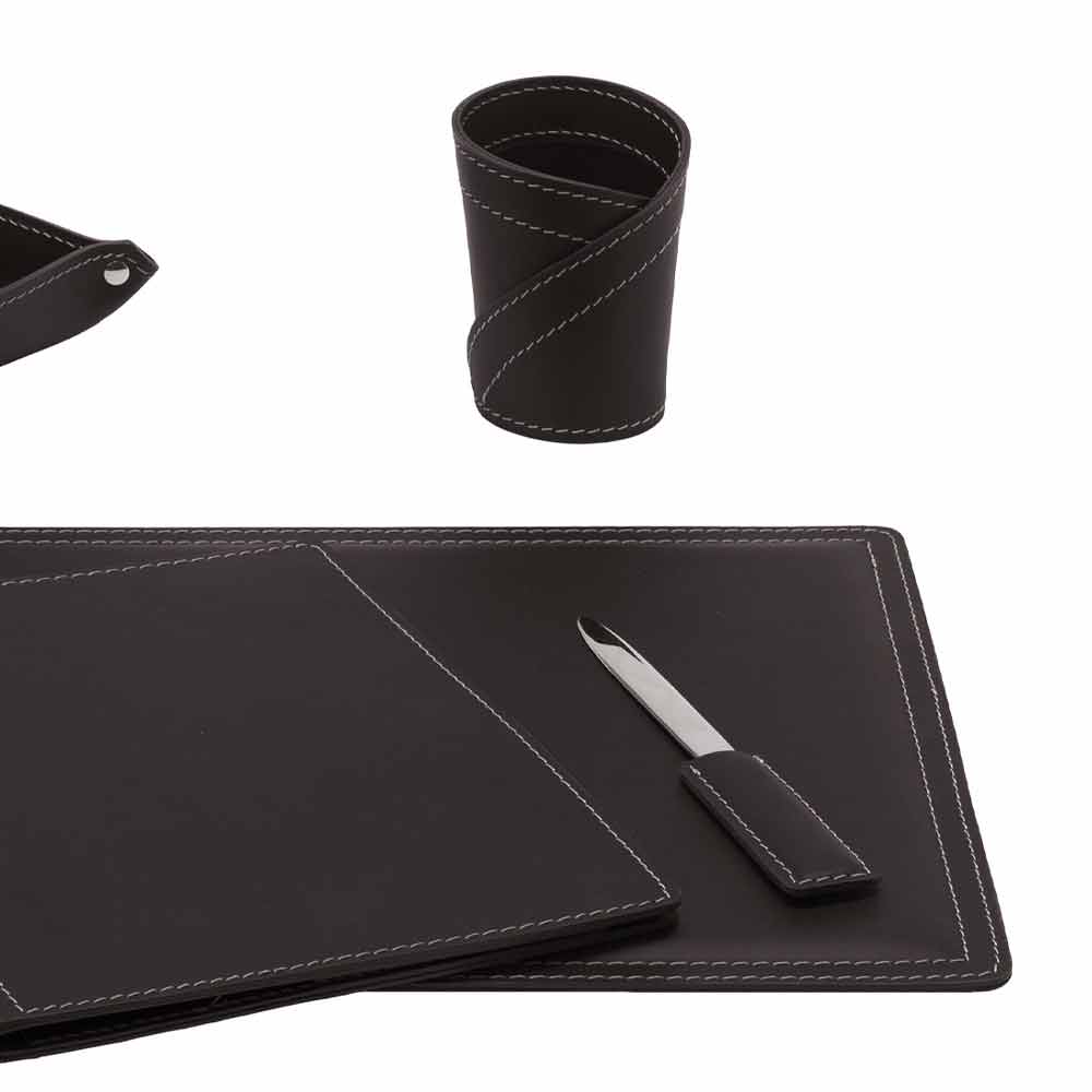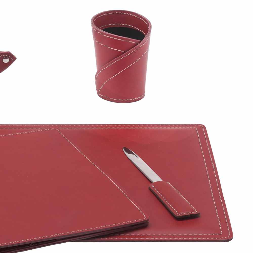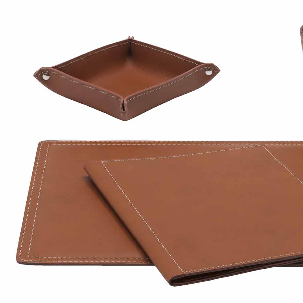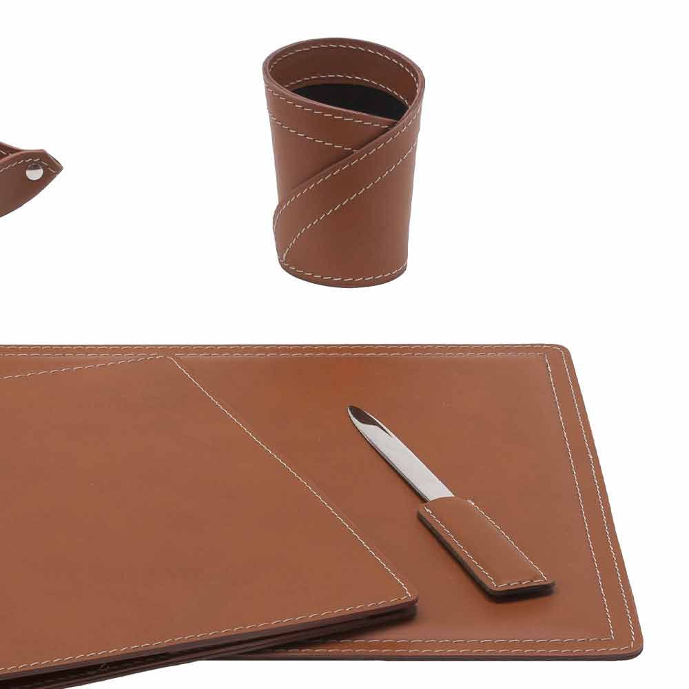 Skrivebordstilbehør i bundet læder sammensat af 5 stykker Fremstillet i Italien Ascanio