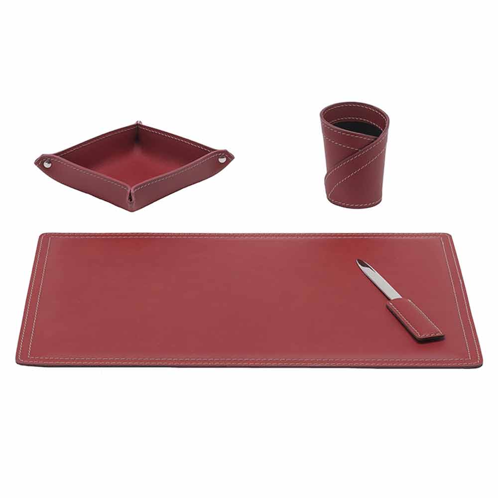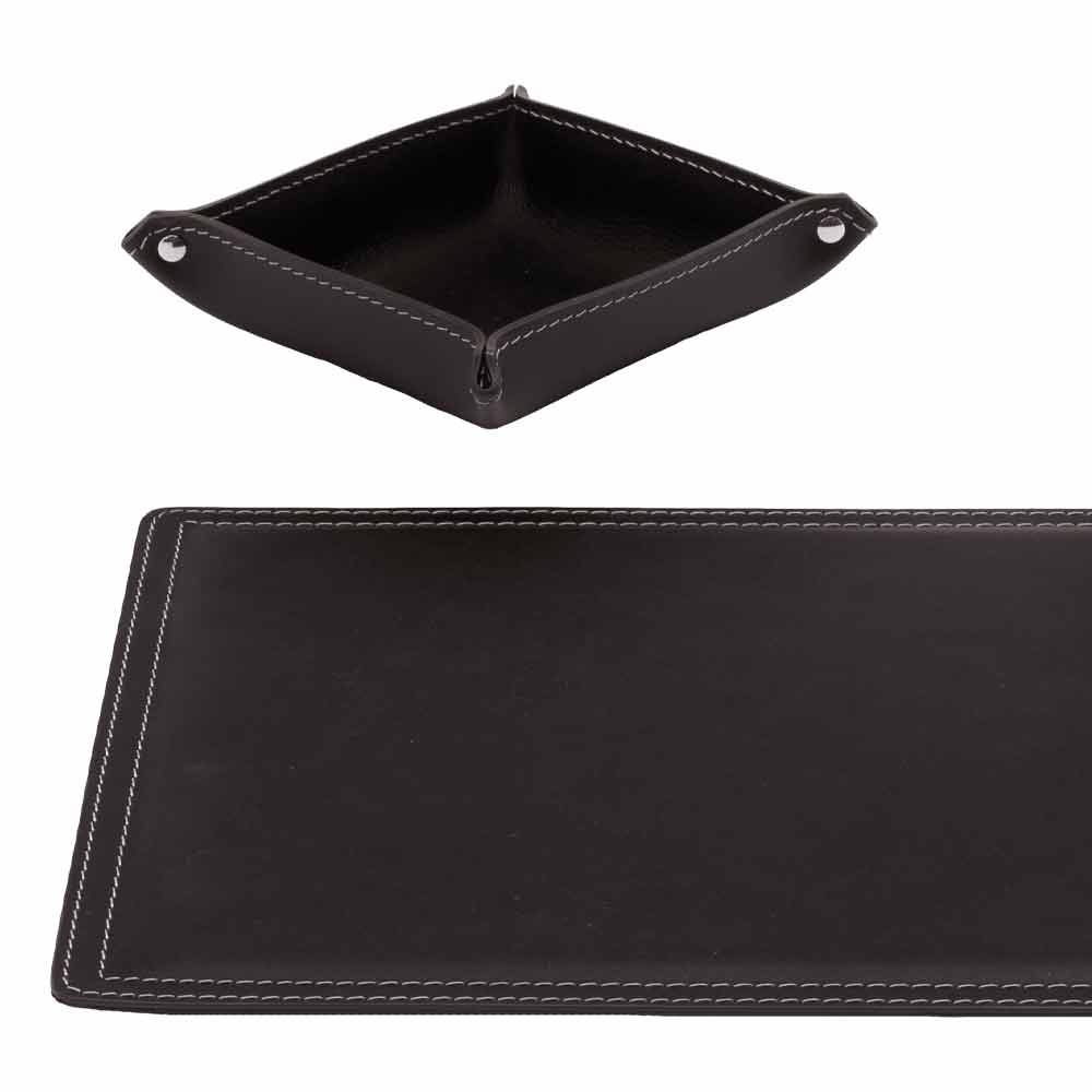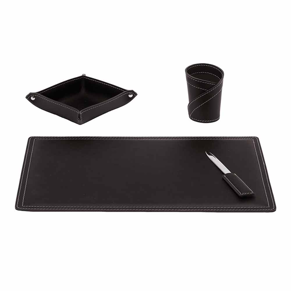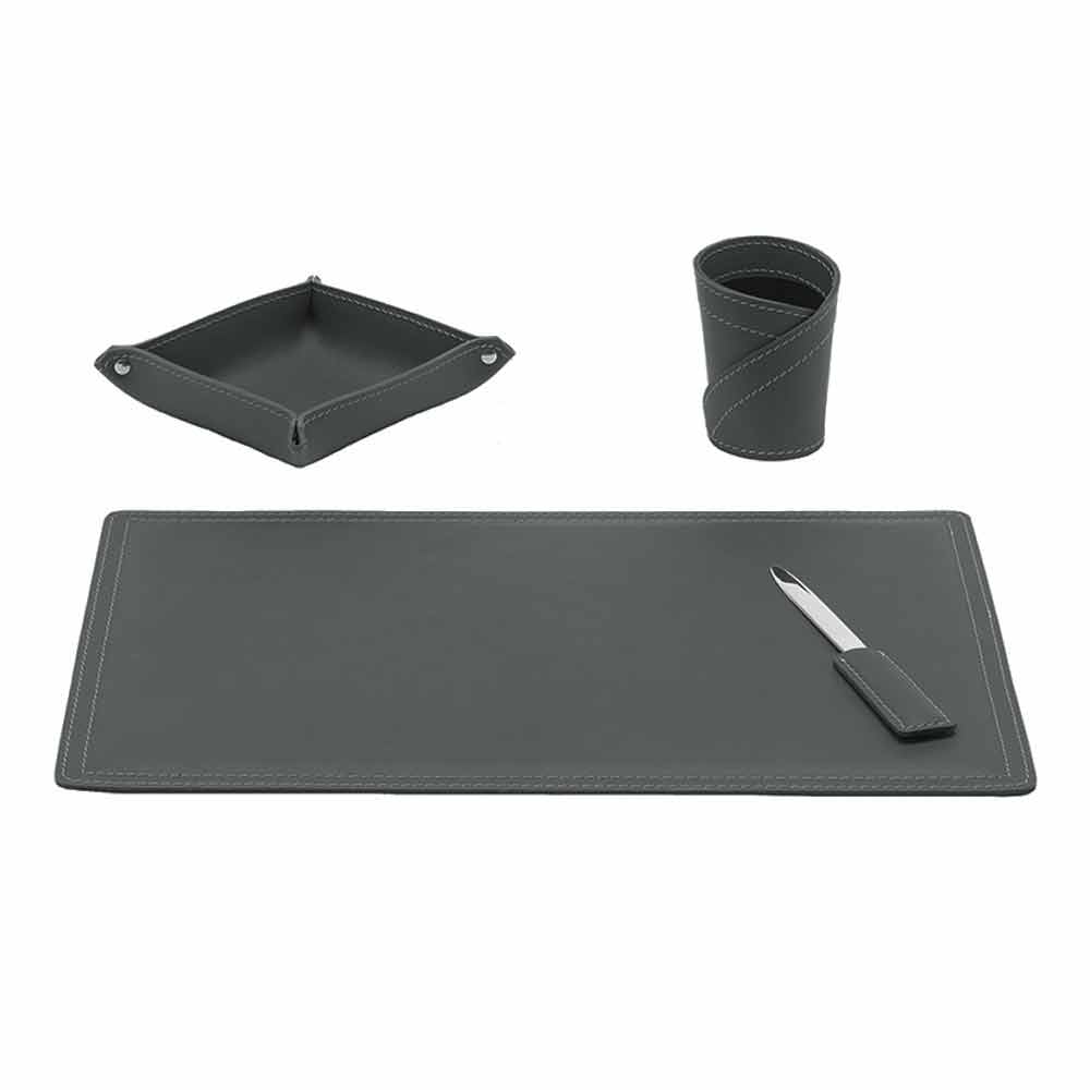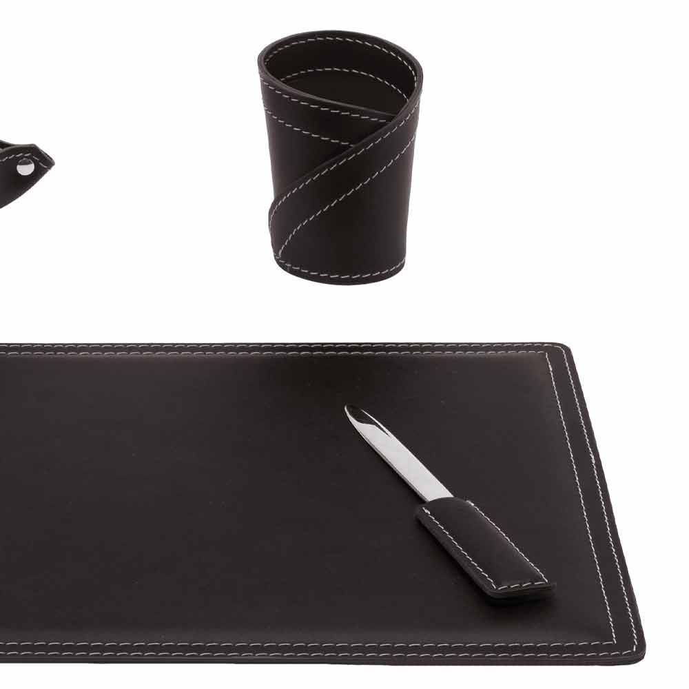 Sæt skrivebordstilbehør i limet læder sammensat af 4 Ascanio Made in Italy tilbehør