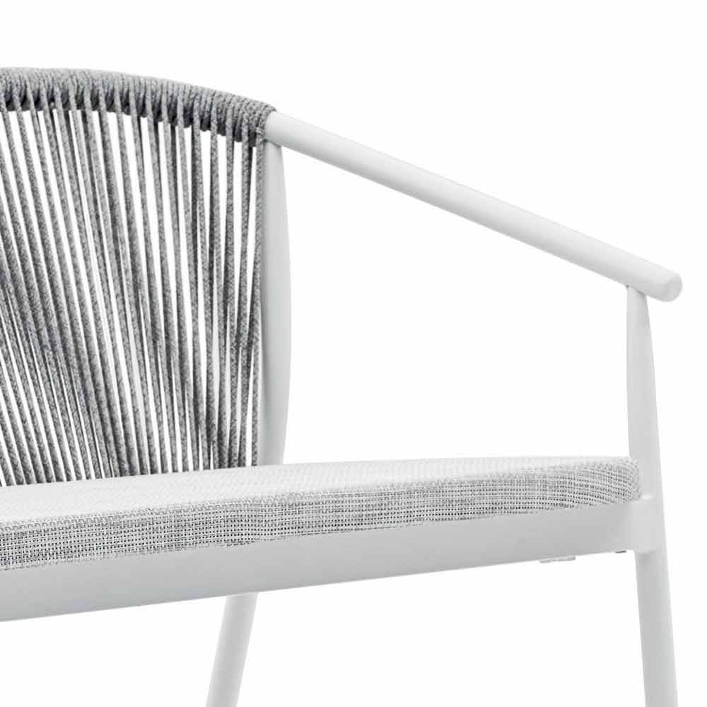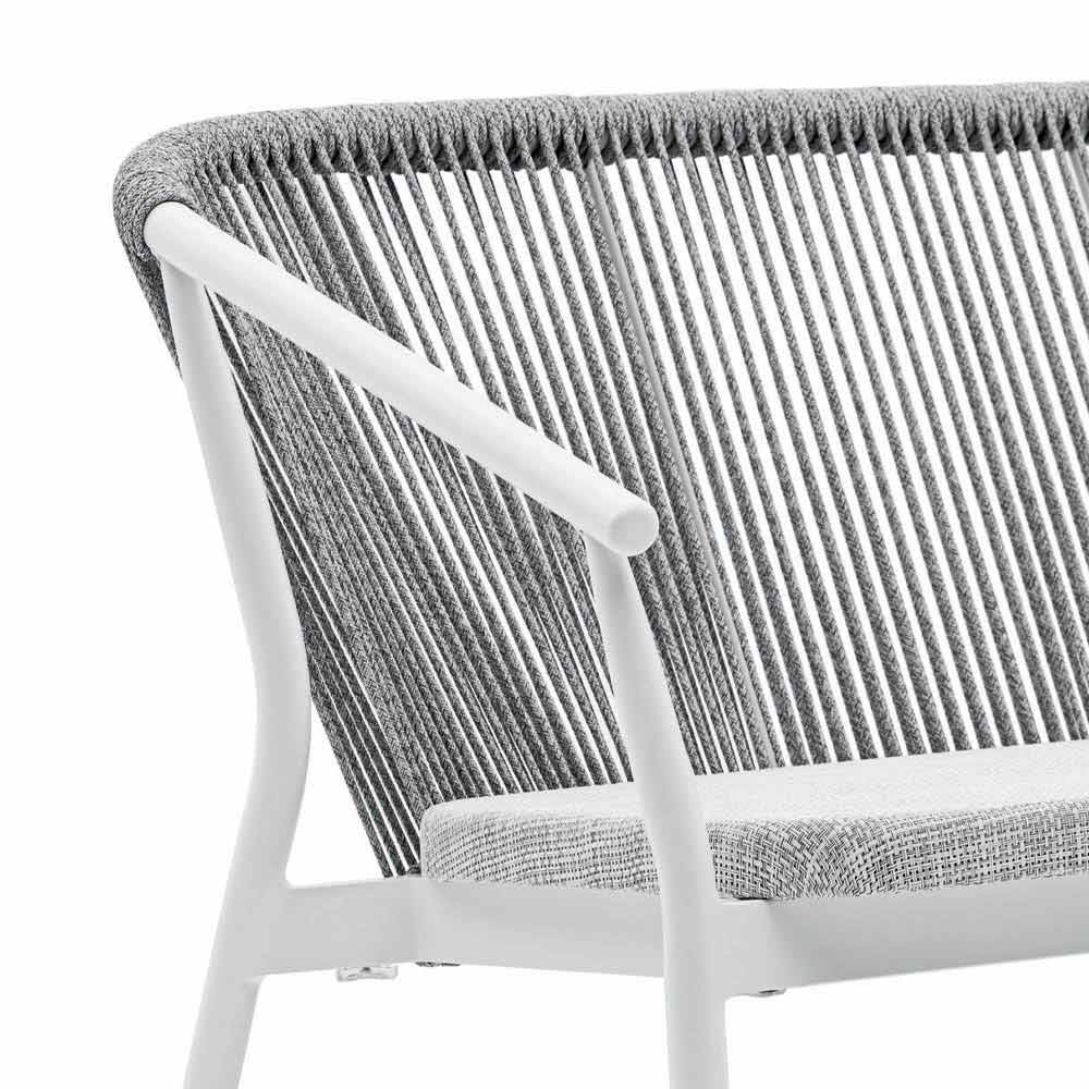 To-personers sofa til moderne design til udendørs, stabelbar med aluminiumsbund og sæde i hvidt eller askefarvet teknisk stof.