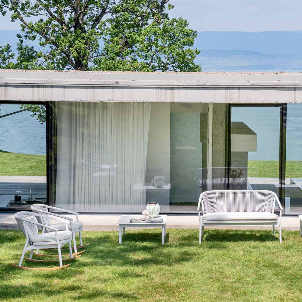 Sammenflettet af ryglænet i VAR # TEX syntetisk ledning forbedrer æstetikken i denne sofa designet til at nyde udendørs dage i selskab.