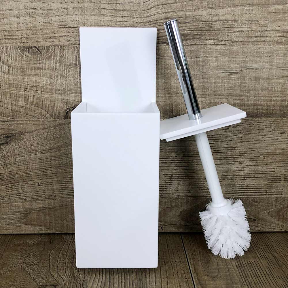Toiletbørsteholder i hvid corian eller med sort designindsats, høj kvalitet fremstillet i Italien.