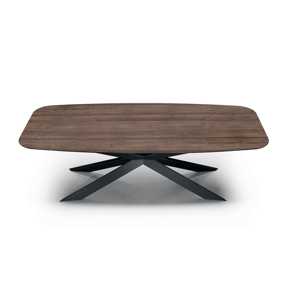 Tøndeformet spisebord i træ- og ståleffekt HPL-laminat Made in Italy.
