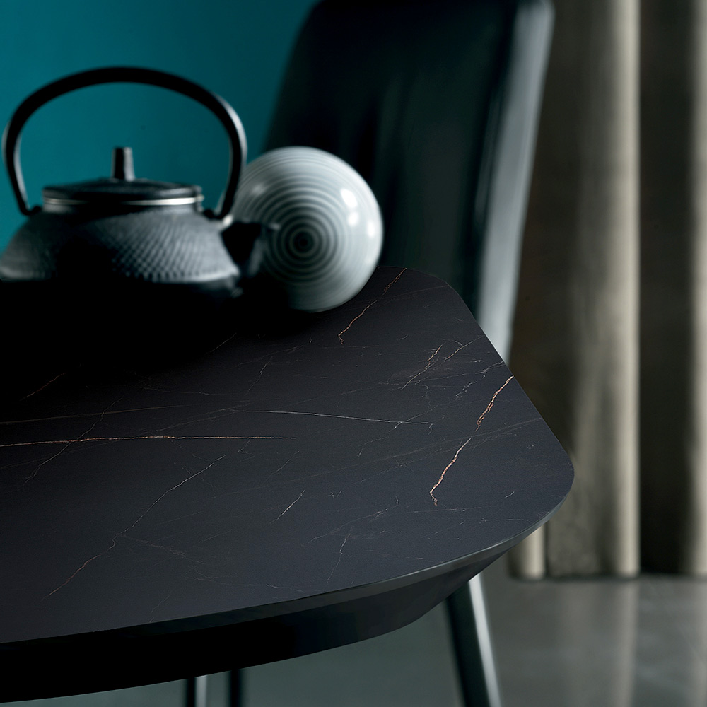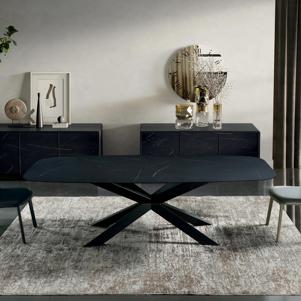 Tøndeformet spisebord i HPL laminat og sort stål Made in Italy.