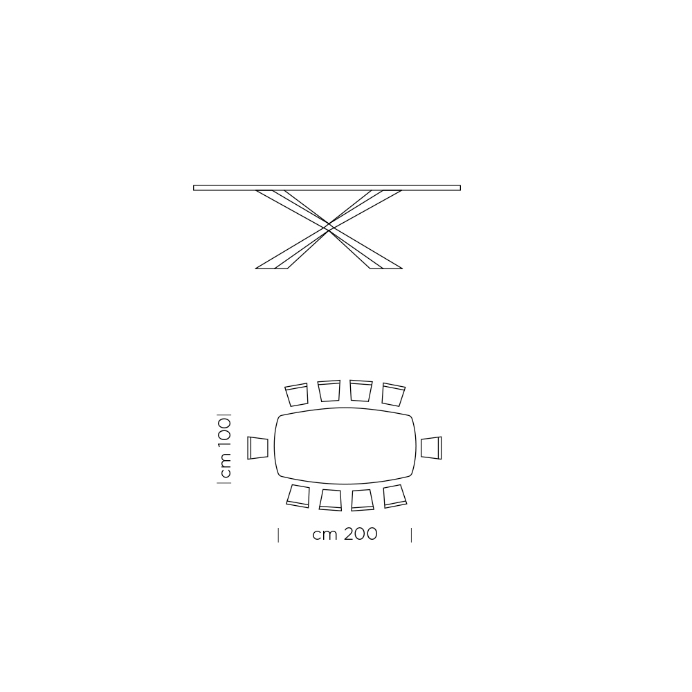 - L 200 x D 100 x H 75,3 cm (10 sæder);