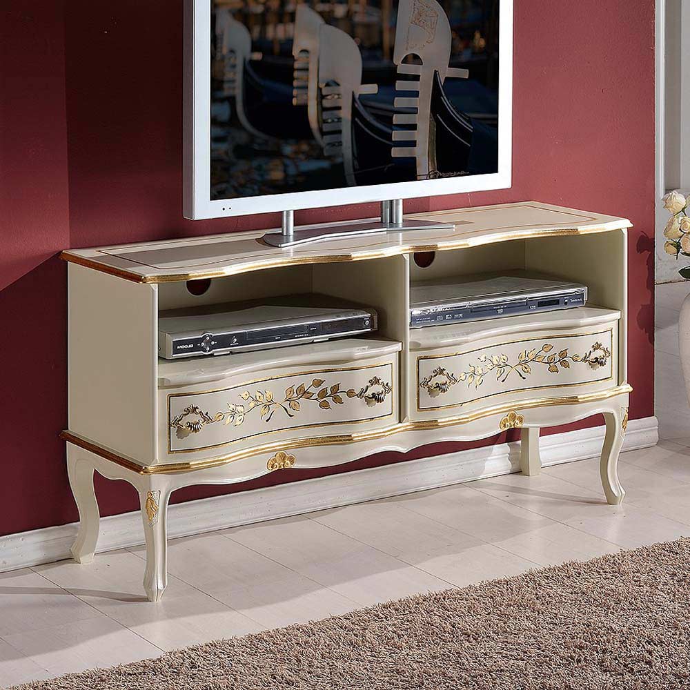 Klassisk TV-bord i træ med 2 skuffer, fremstillet i Italien.