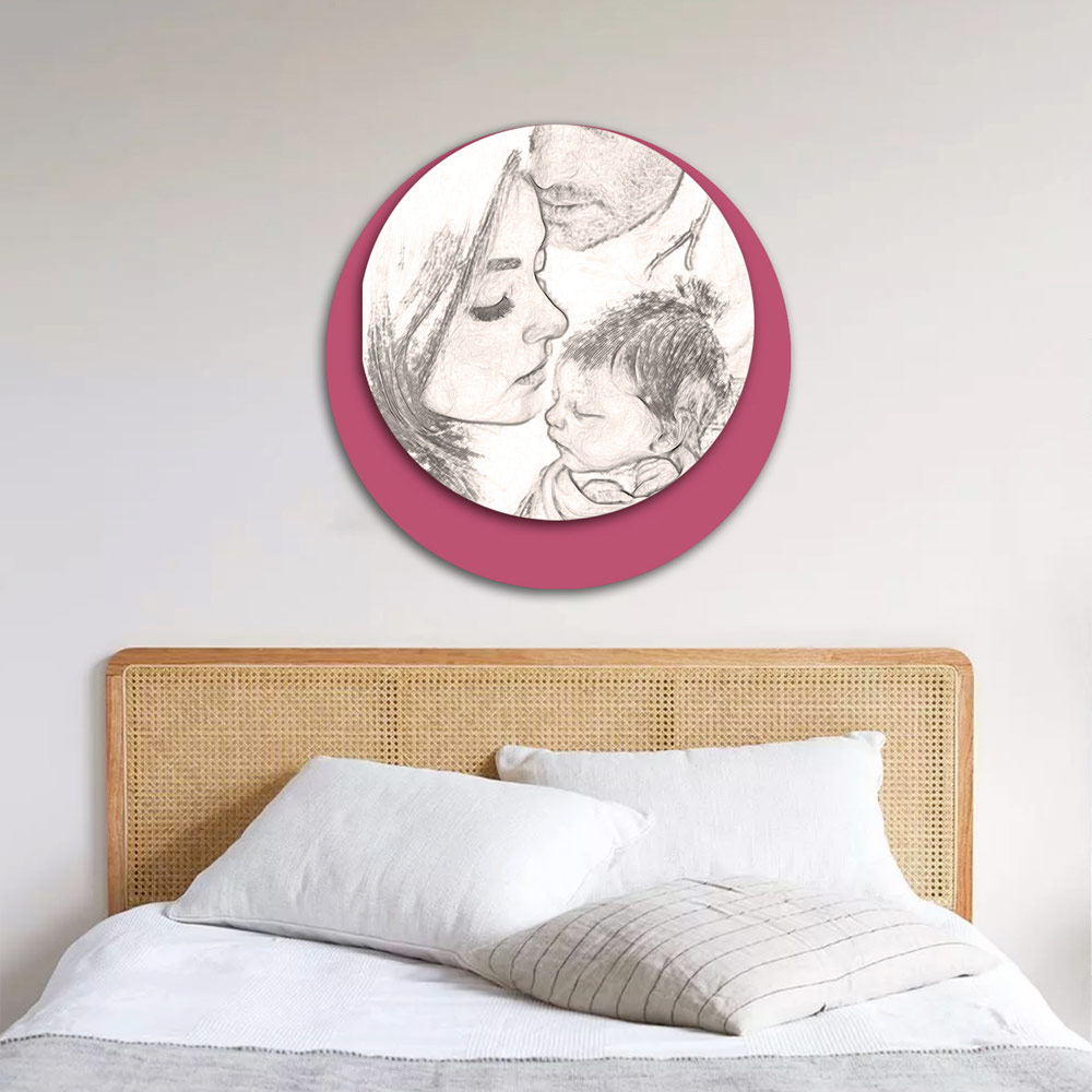 Kærlighed, hengivenhed, beskyttelse er de følelser, der opstår, når man ser på dette maleri, hvor familien er forenet og har et spil med blikke, hvor han ser på hende, hun ser på sin søn, der står over for hende. Finisherne, det valgte træ til produktionen og trykteknikken fremhæver al