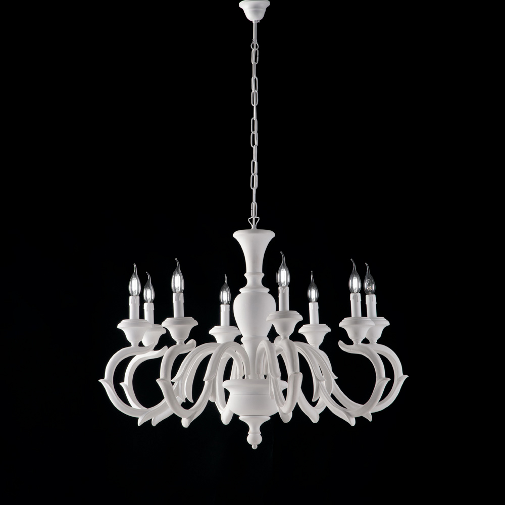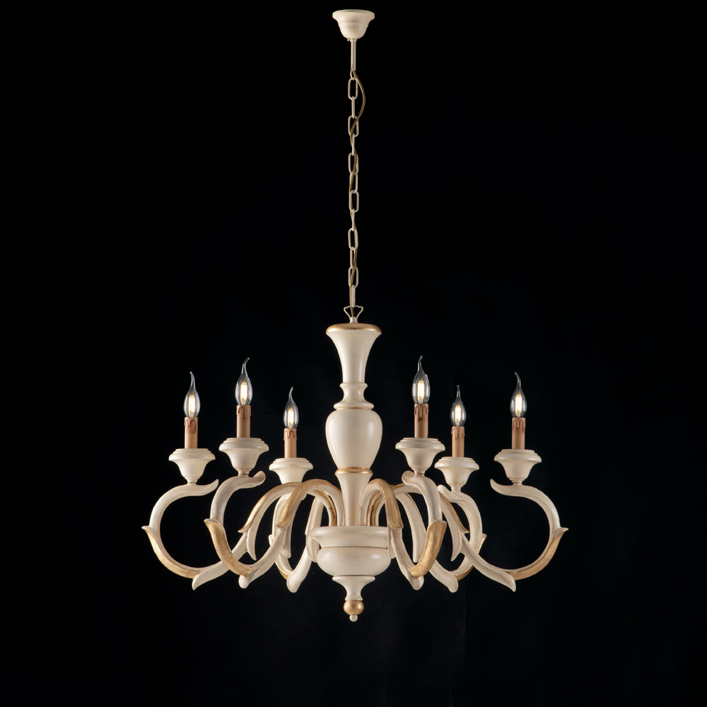 Tidløs elegance og professionelt håndværk mødes i denne klassiske trælysekrone, fremstillet i Italien , fremstillet med omhu og sans for detaljer. Den harmoniske struktur, karakteriseret af bugtede arme i traditionel stil , giver rummet en dramatisk og raffineret elegance.