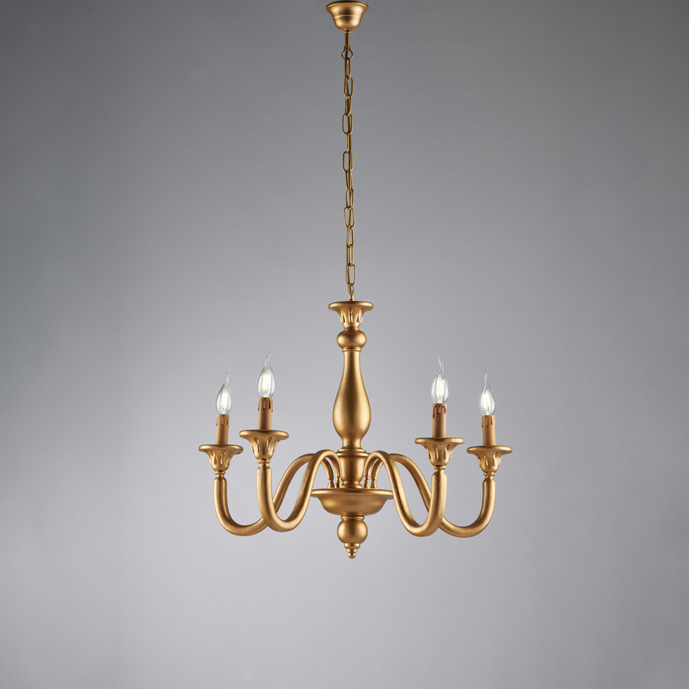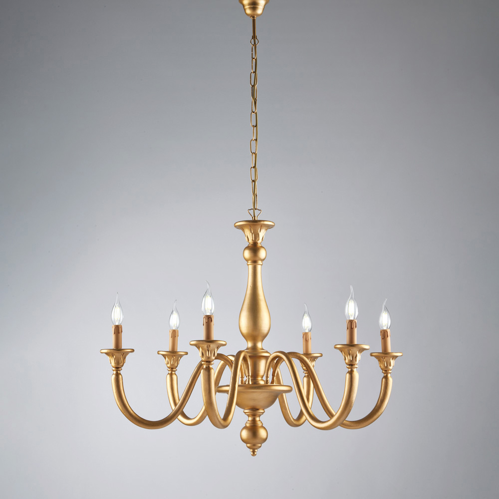 Denne klassiske håndlavede trælysekrone er elegant og tidløs og fortolker traditionel italiensk stil med harmoniske former og fængslende finish. Den slanke struktur med buede arme og stearinlyslignende lys giver visuel lethed og skaber en varm og indbydende atmosfære, perfekt til rum med tidløs elegance.