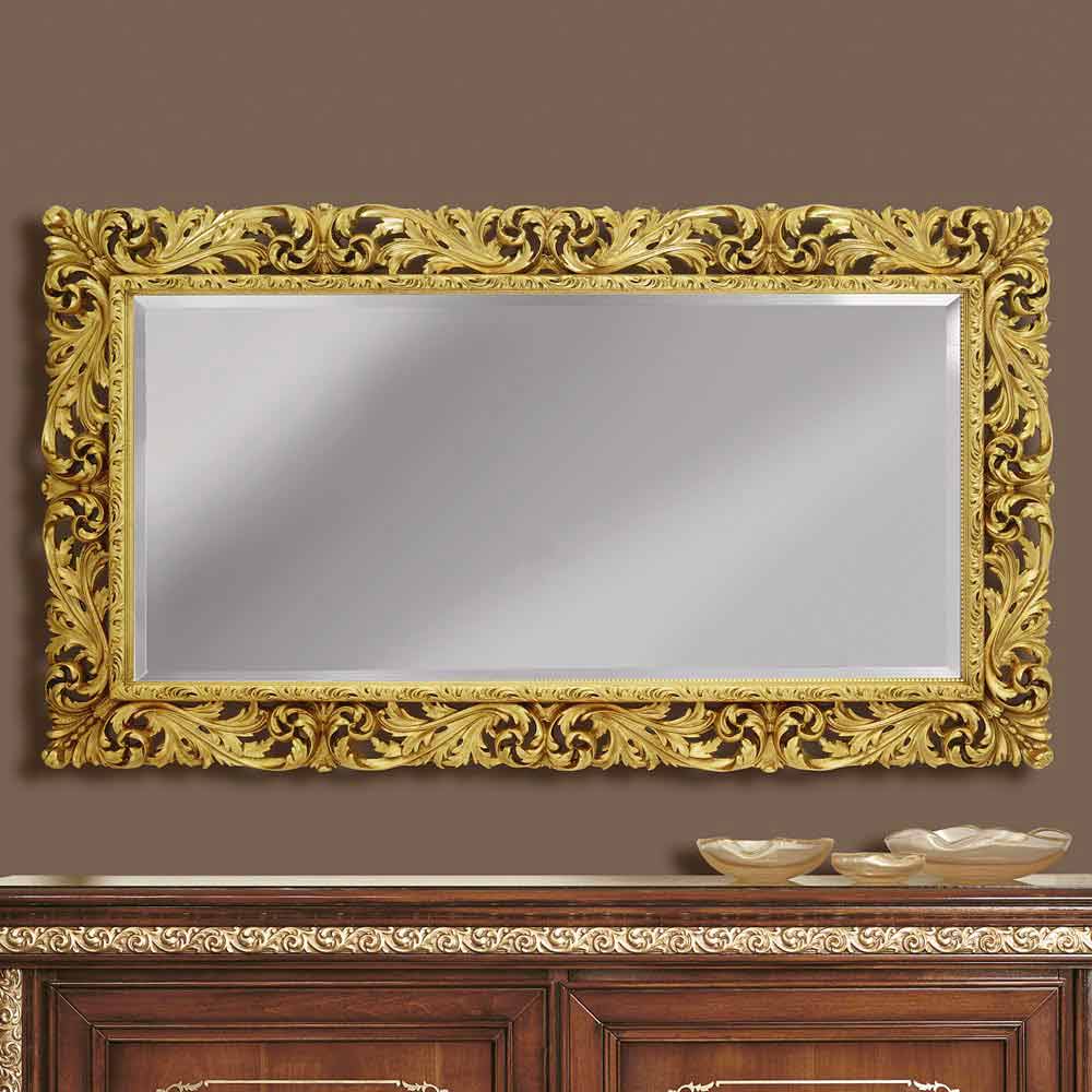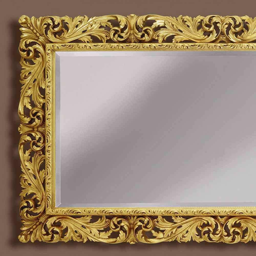 Dette spejl er perfekt til dem, der ønsker at tilføje et strejf af historisk stil og en aura af elegance til rum som stuer, spisestuer eller store korridorer. Det er en genstand, der taler om luksus og en krævende smag, en investering, der vil berige ethvert hjem med sin majestætiske og kongelige tilstedeværelse.