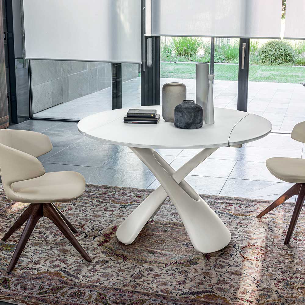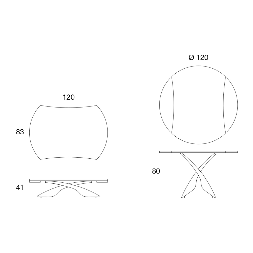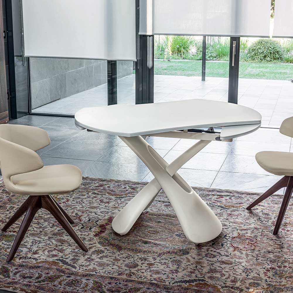 Sofabord, der kan laves om til spisebord med metalbund og glasplade, fremstillet i Italien.