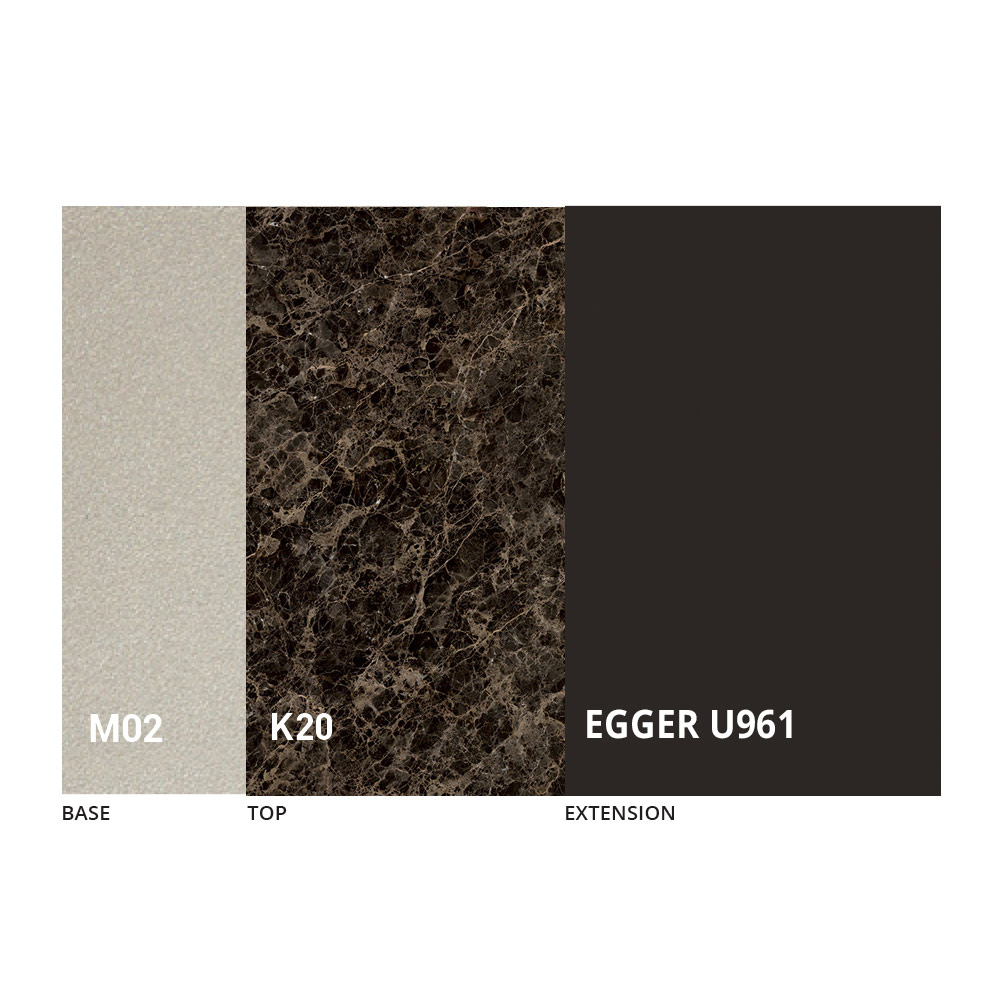 Toppen fås i melamin-, matkeramik-, glas- og mørteleffekt i en bred vifte af finish.