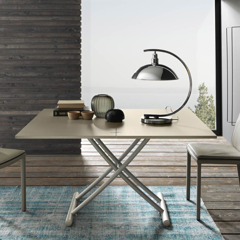 elegante og væsentlige linjer , der ledsager et alsidigt design, viser dette møbel sig at være velegnet til at møblere enhver miljøstil og er udtænkt og designet specielt til dem, der leder efter et moderne sofabord, der kan blive et praktisk og funktionelt, hvis det er nødvendigt pladsbesparende spisebord perfekt til at optimere pladsen i små spisestuer eller stuer.